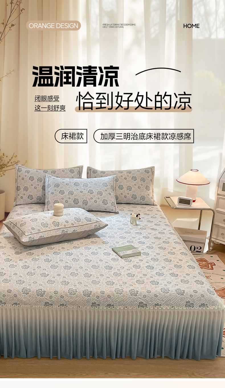 商品名称:雅居纺家纺 2025新款加厚三明治底床裙款凉感席 梦幻-蓝