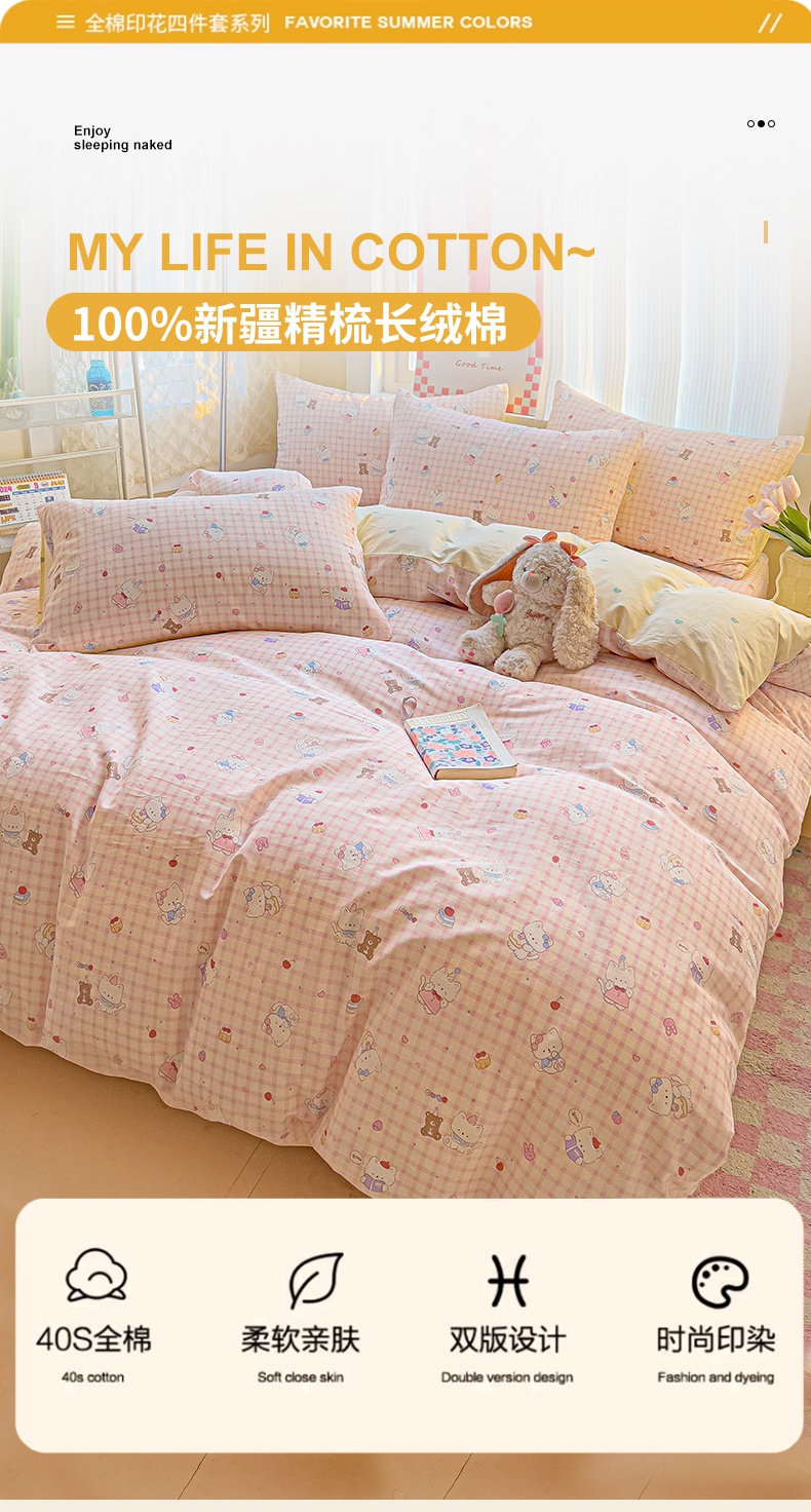商品名称:棉生活家纺 2025新款ins全棉小清新系列四件套 甜美梦境