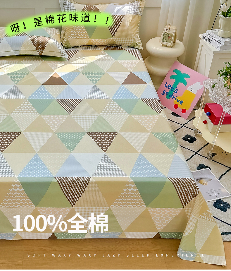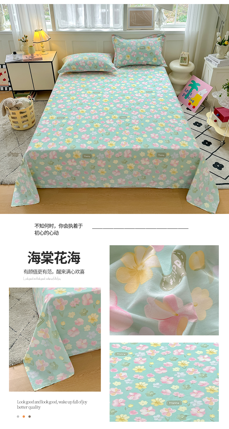 红粉佳人家纺 2025新款12868纯棉系列全棉单床单 云峰-绿