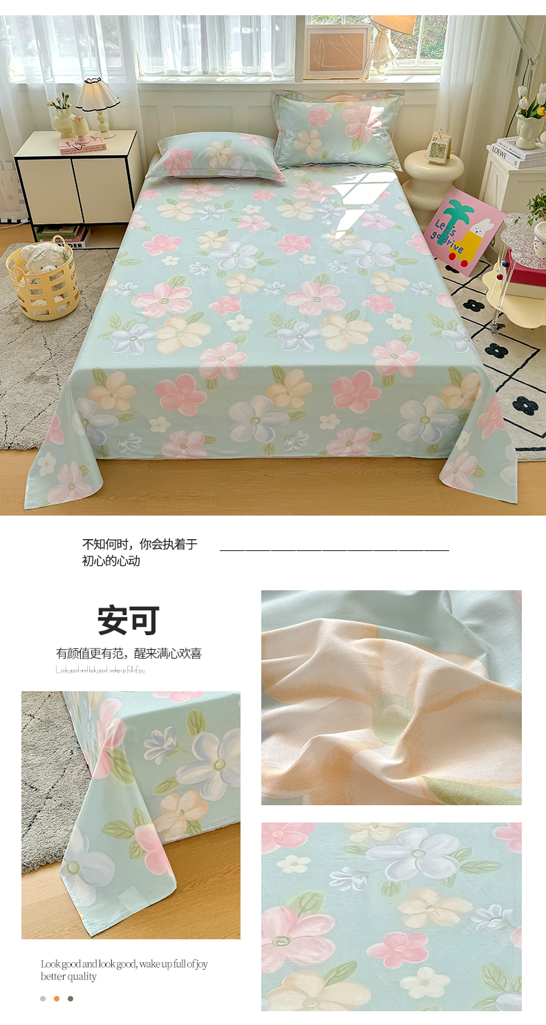 • 91家纺网 家纺一手货源 找家纺 红粉佳人家纺 2025新款12868纯棉系列全棉单床单 云峰-绿