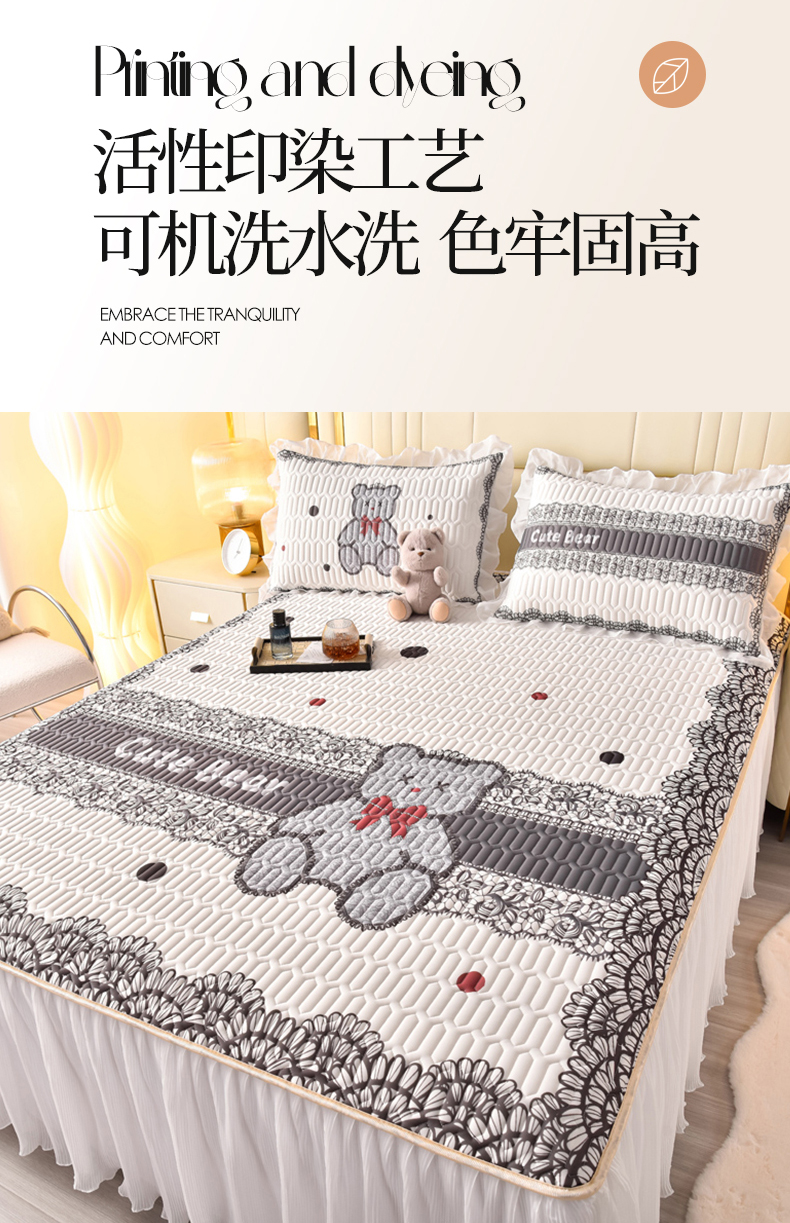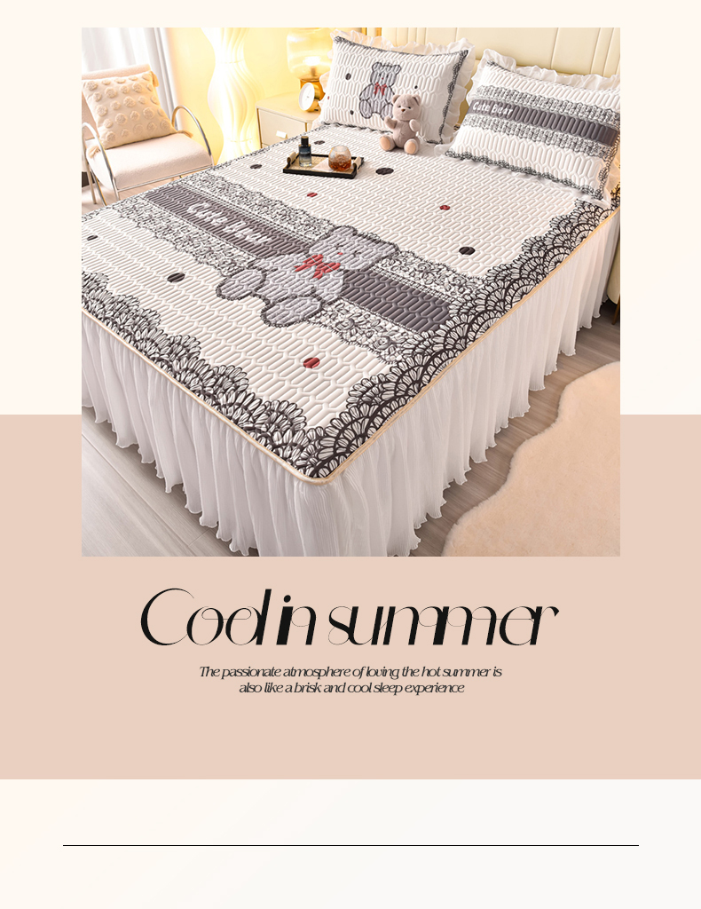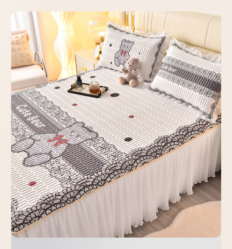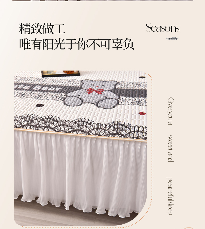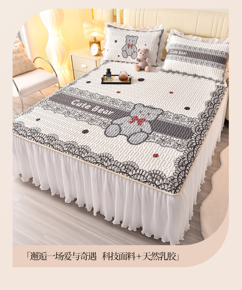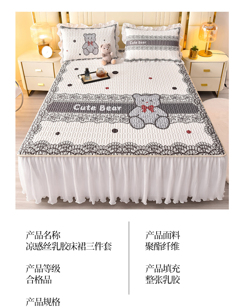 炫拼家纺 2025新款凉感丝印花床裙款乳胶凉席三件套 黛莎