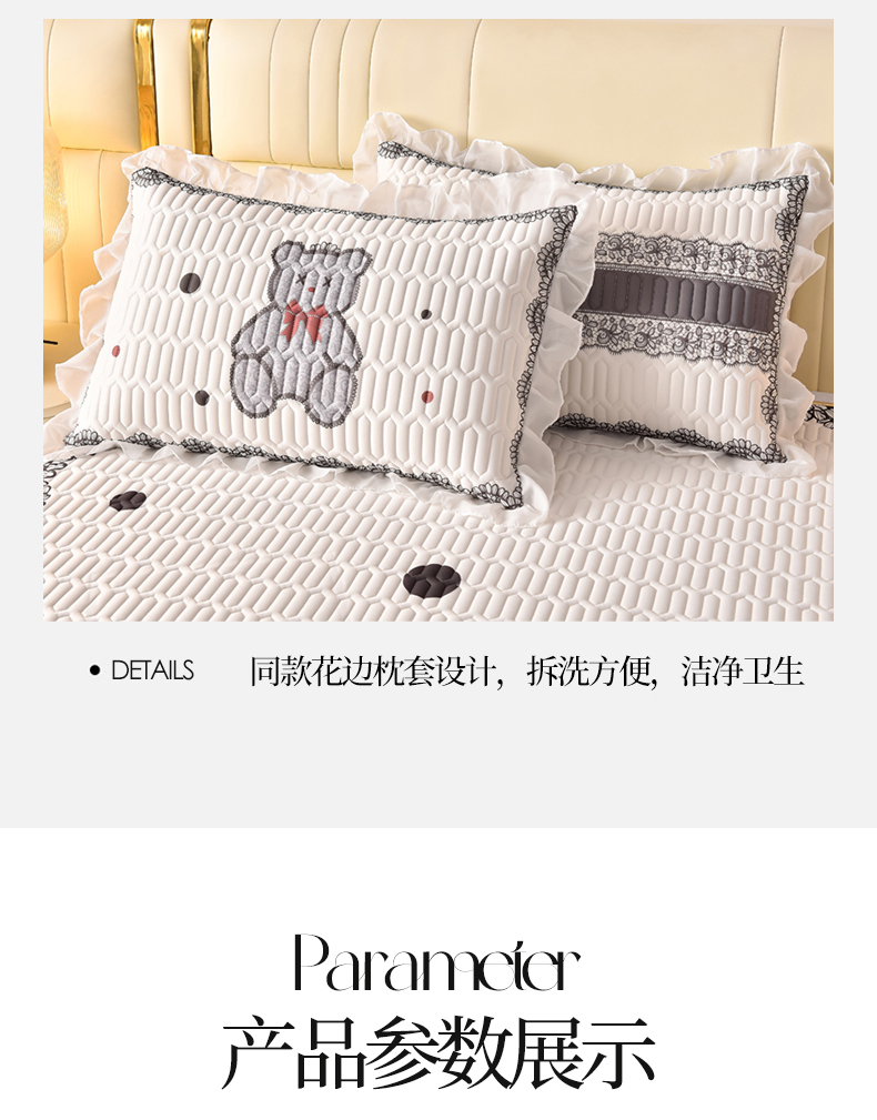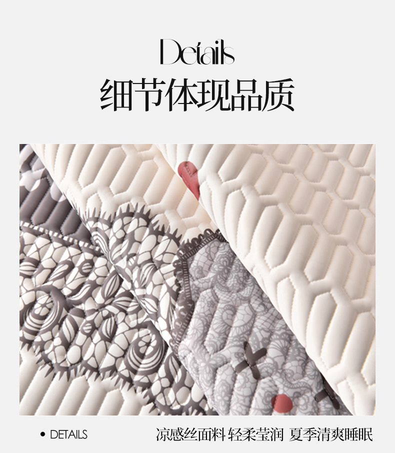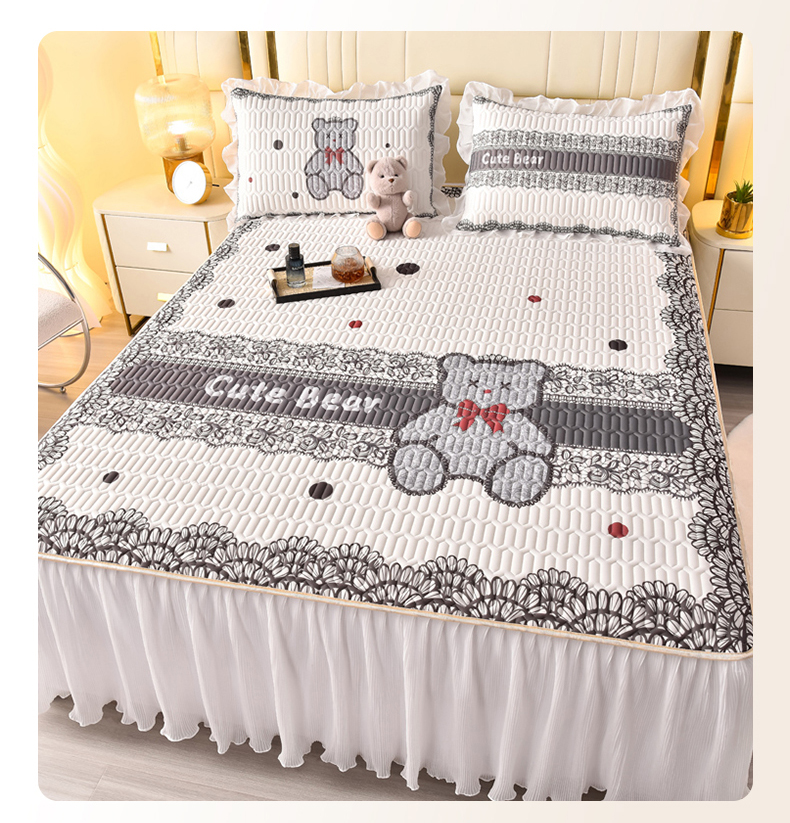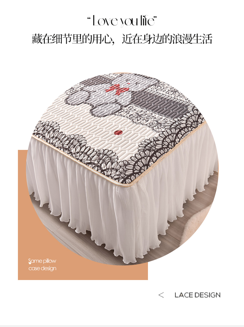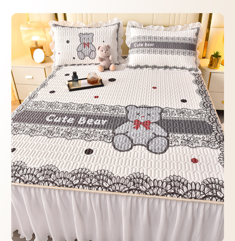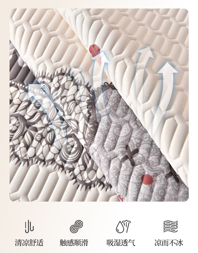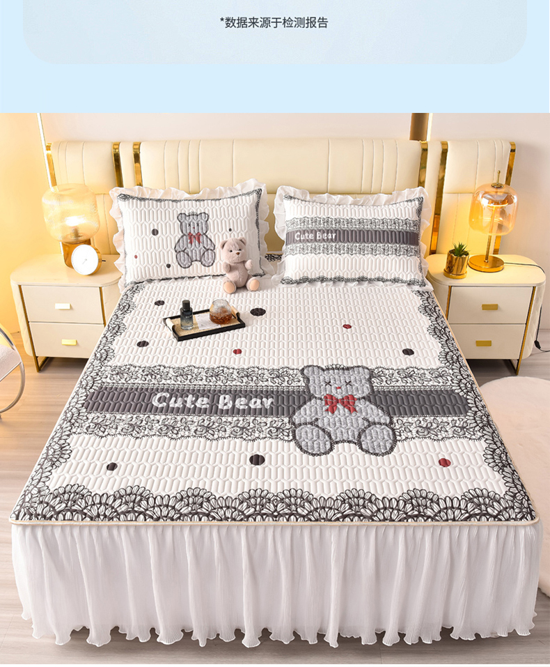 炫拼家纺 2025新款凉感丝印花床裙款乳胶凉席三件套 黛莎