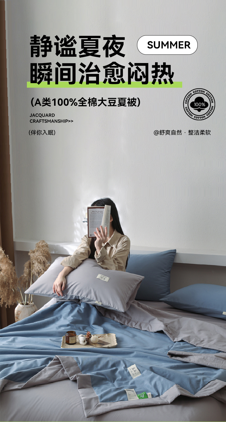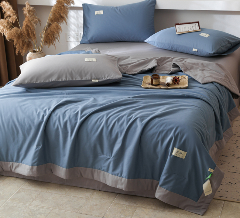 • 91家纺网 家纺一手货源 找家纺 眠博士 2025新款A类全棉40S纯棉新疆棉大豆夏被夏凉被空调被 包边夏被40支-宝蓝拼银灰