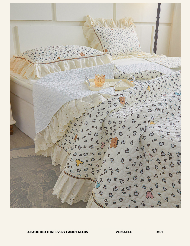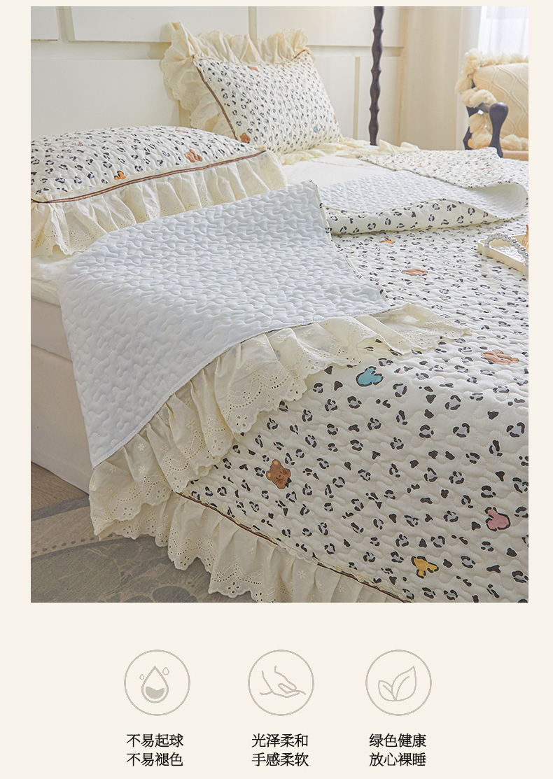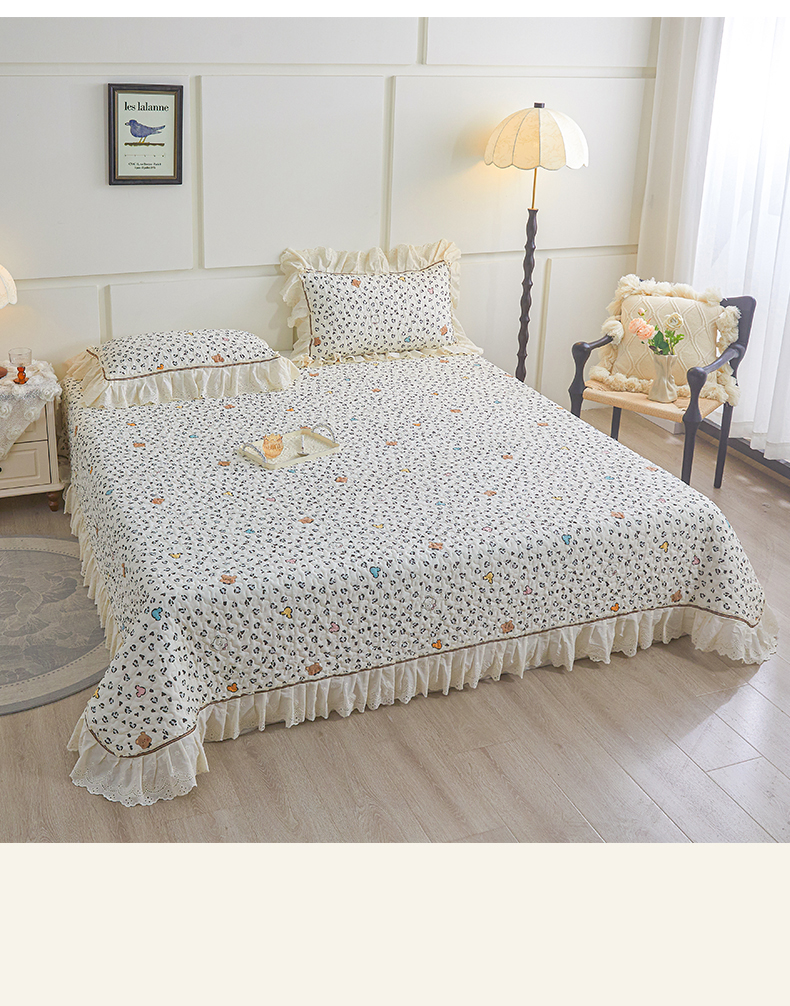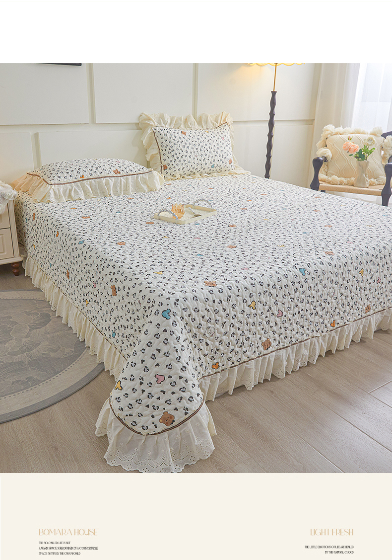 恒爱家纺 2025新款全棉纯棉韩版印花床盖三件套 泡泡熊