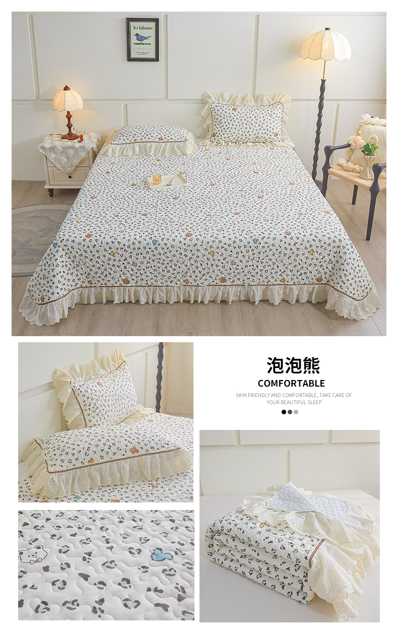 商品名称:恒爱家纺 2025新款全棉纯棉韩版印花床盖三件套 泡泡熊