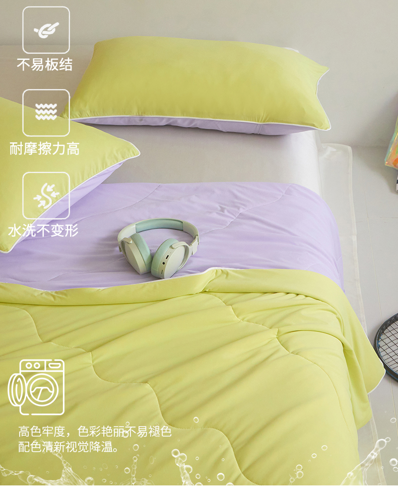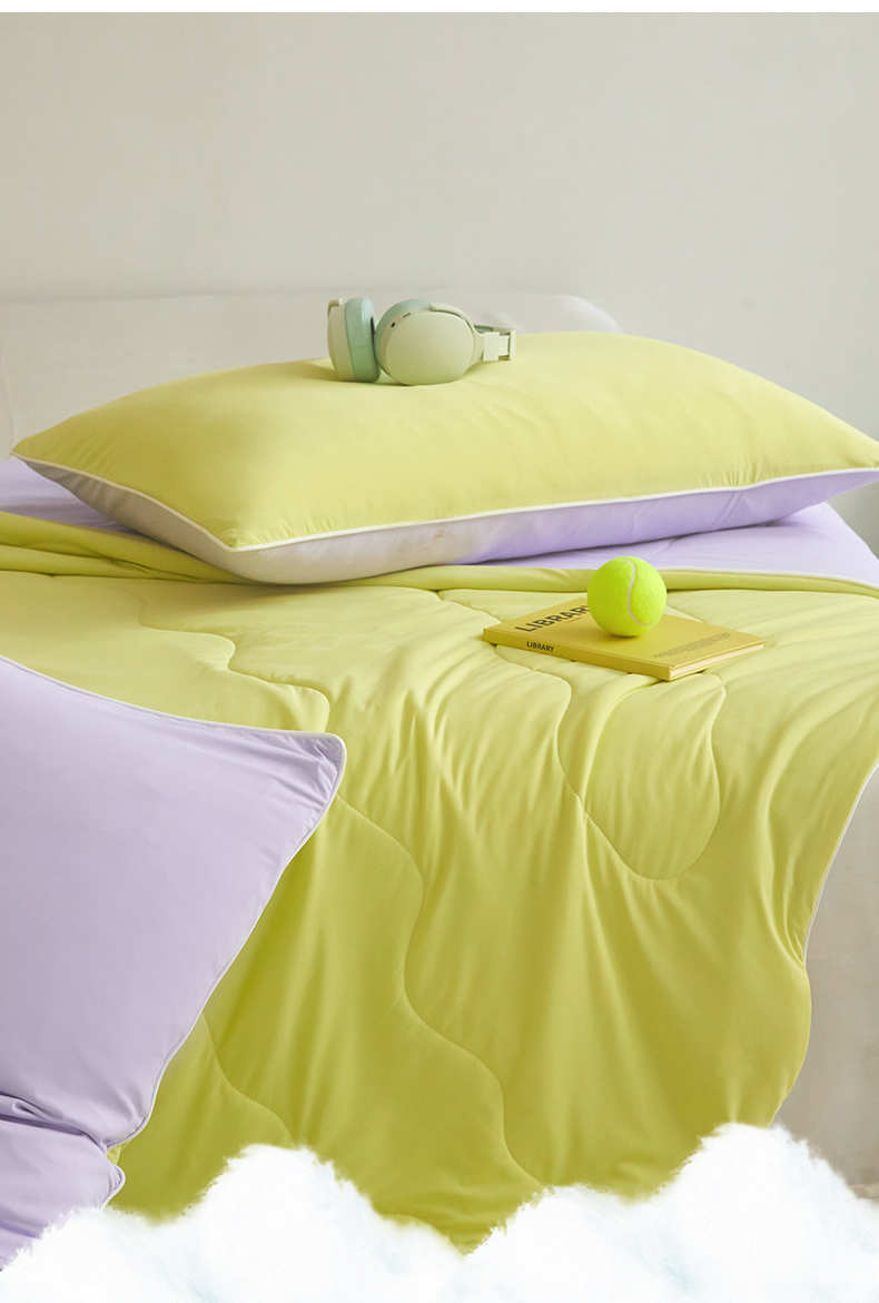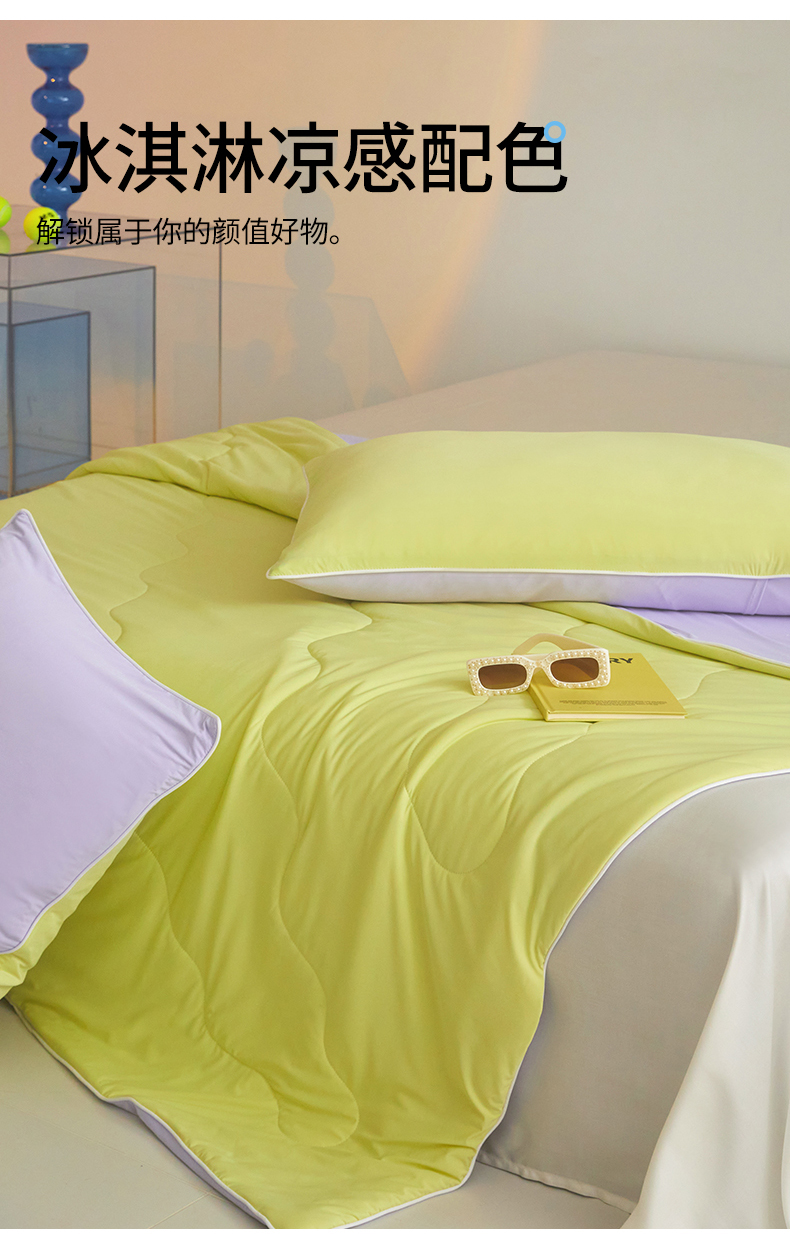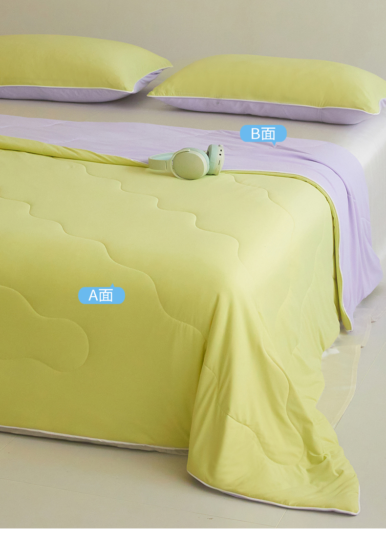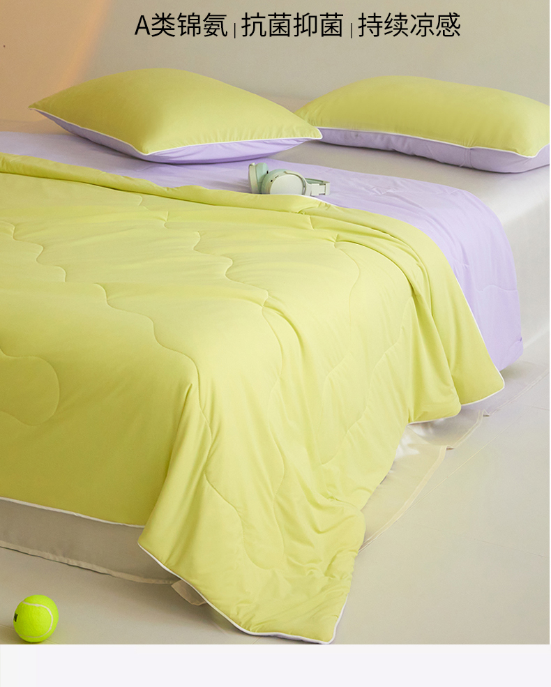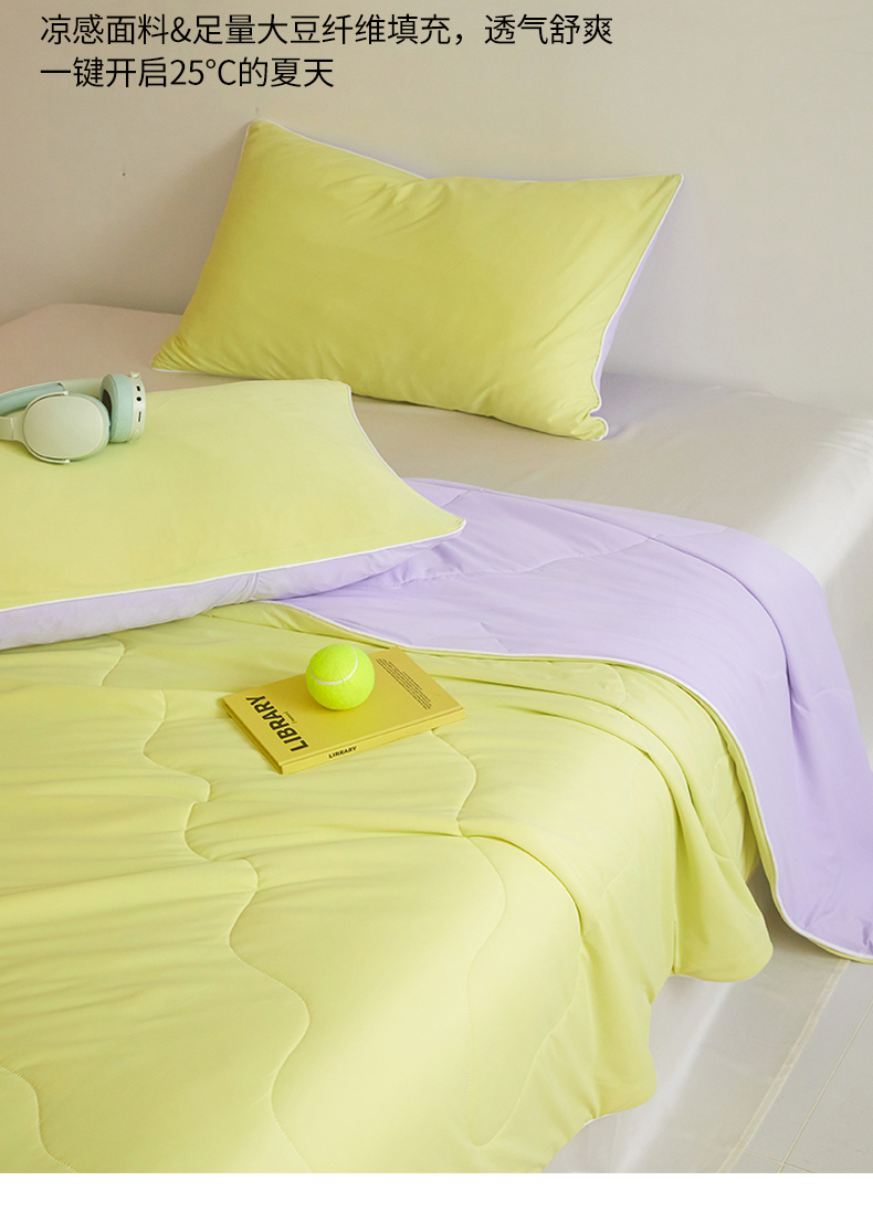 商品名称:头等舱 2025新款4.0版凉感A类锦氨(165克)55大豆抗菌夏被配礼盒 黄绿拼嫣然紫
