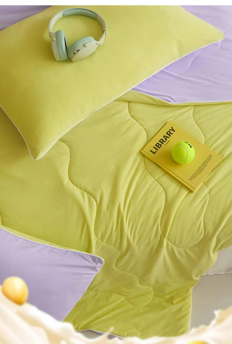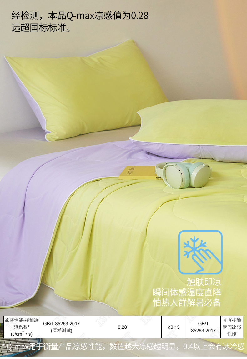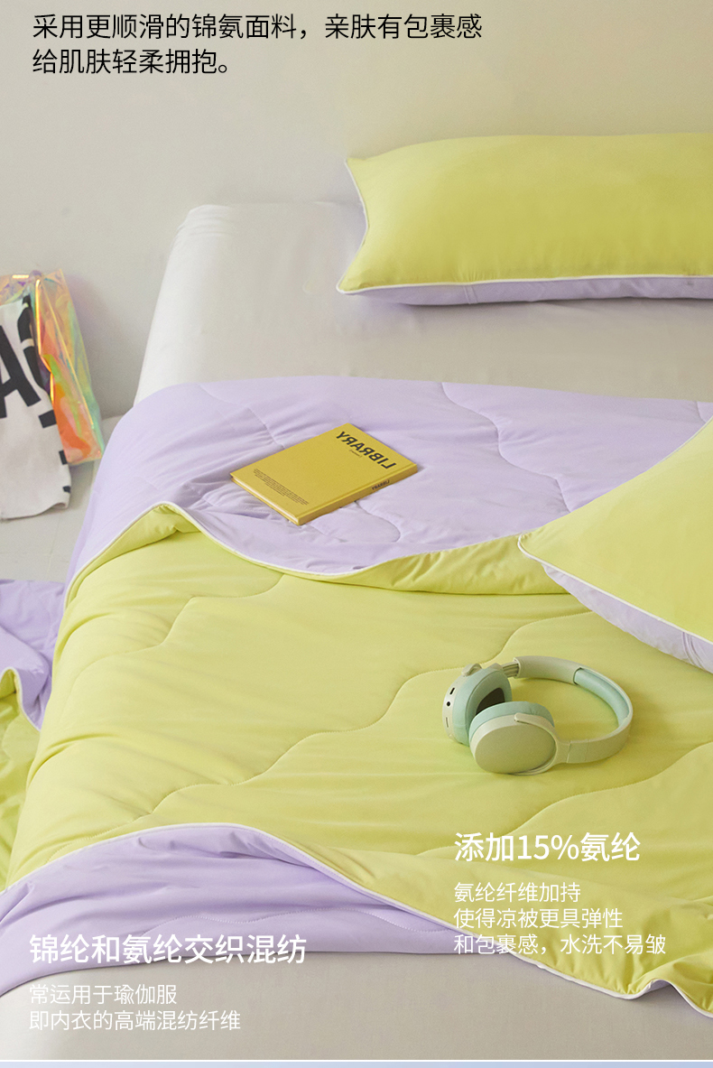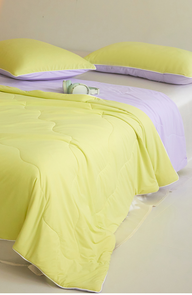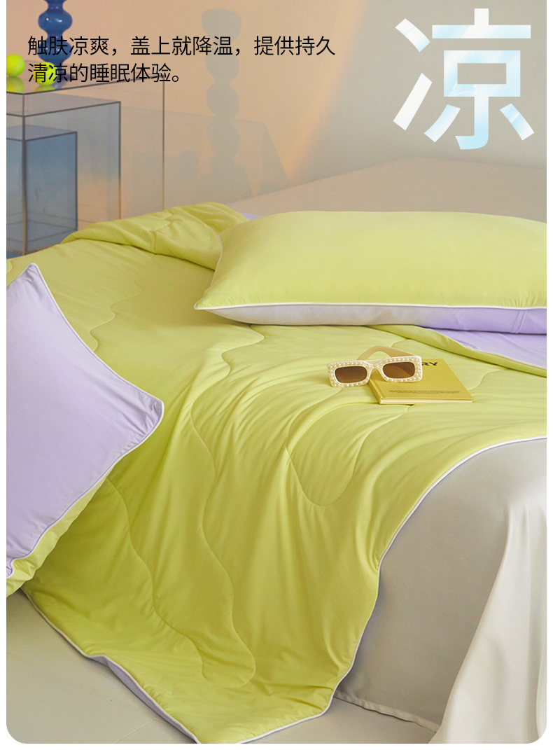 商品名称:头等舱 2025新款4.0版凉感A类锦氨(165克)55大豆抗菌夏被配礼盒 黄绿拼嫣然紫