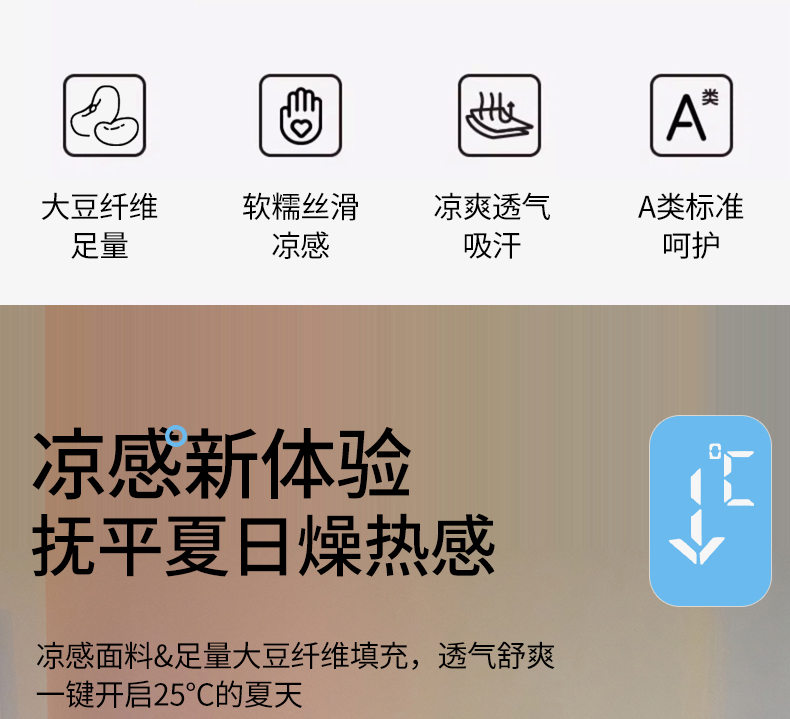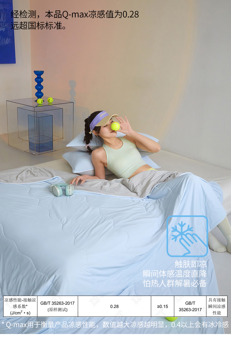 头等舱 2025新款4.0版凉感A类锦氨(165克)55大豆抗菌夏凉被夏被配礼盒模特图 典雅兰拼浅灰
