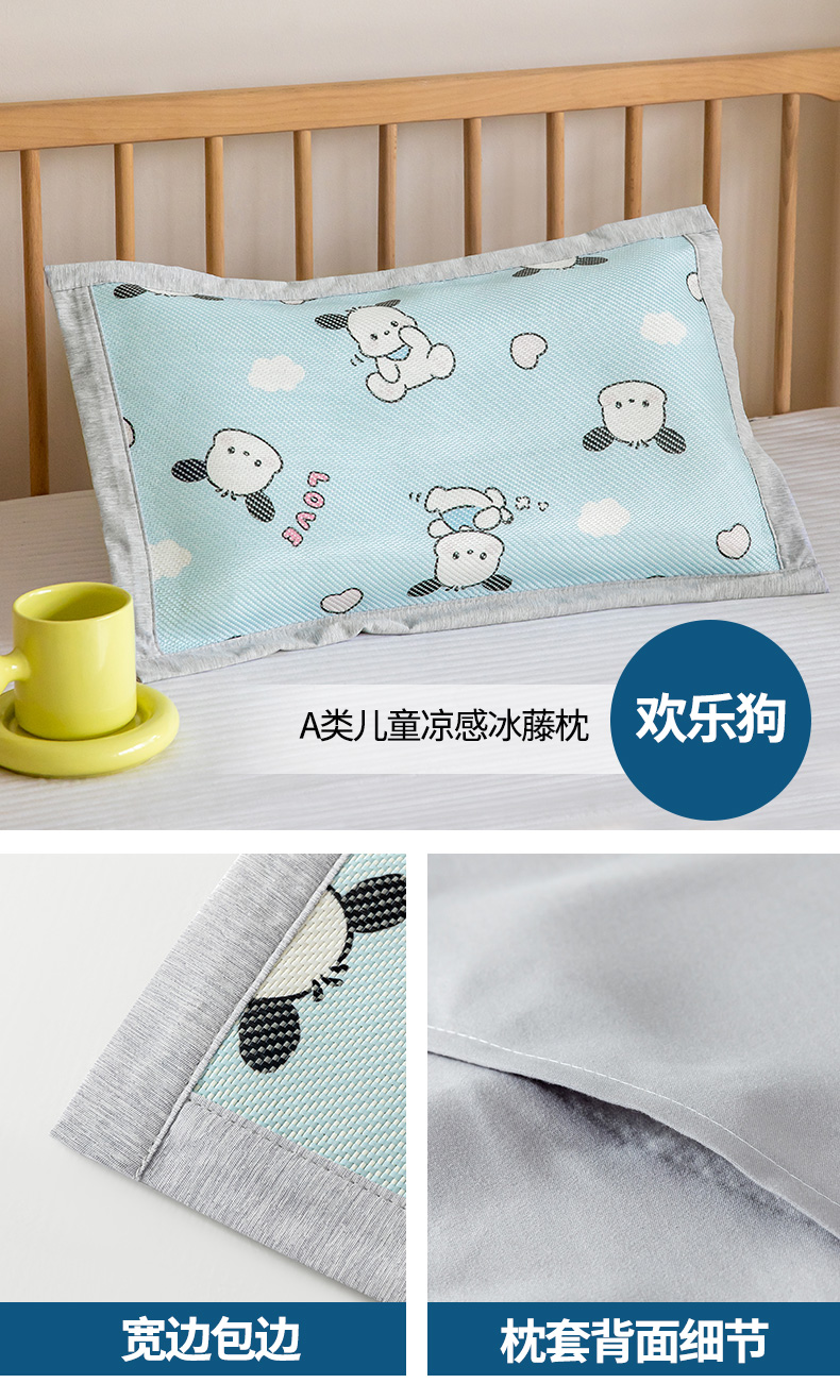 商品名称:嗨生活 2025新款A类儿童冰藤枕套 幼儿园枕套 儿童枕套 欢乐狗