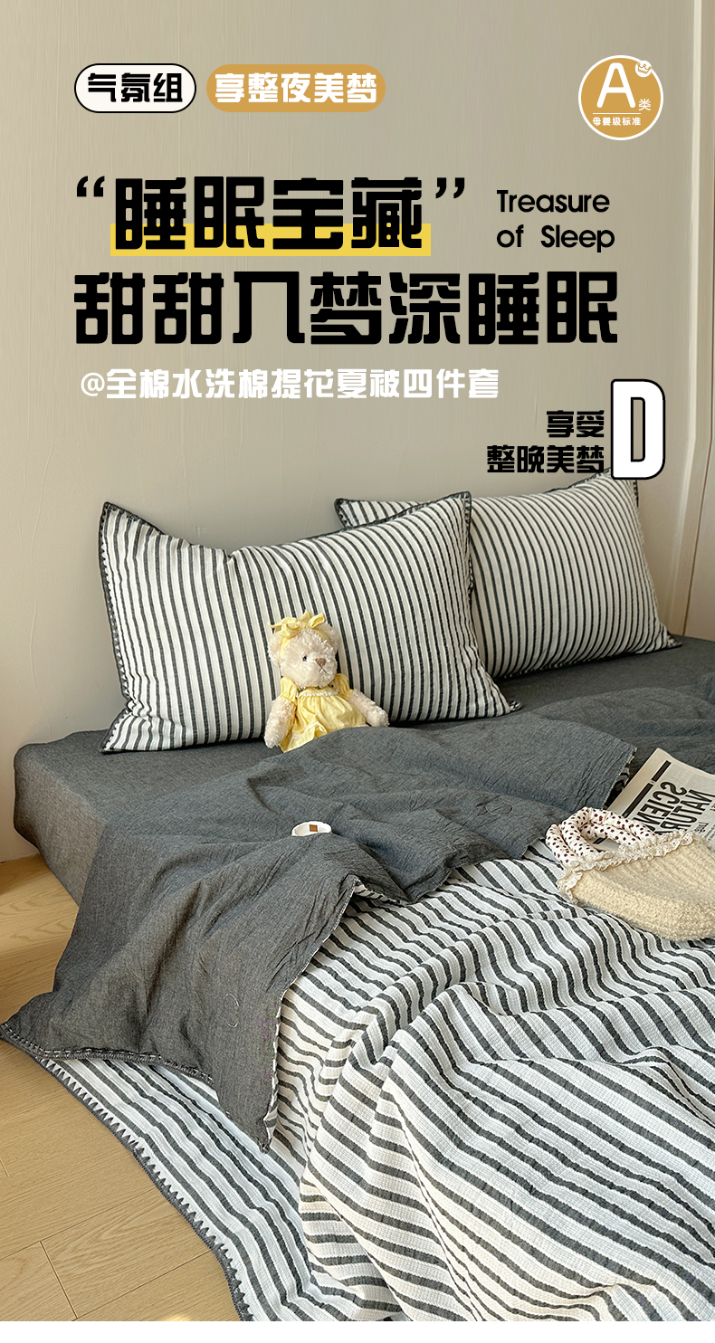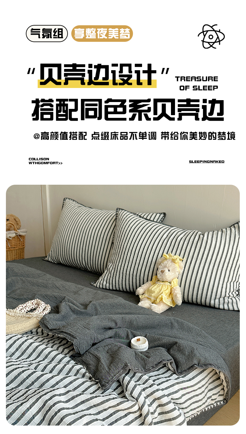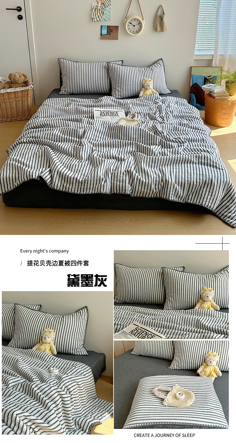 当前位置: 91家纺网 > 商品网购 > 床品套件 > 四件套 > 全棉普通四件套 > 曼町家居2025新款全棉水洗棉提花贝壳边夏被系列 黛墨灰
