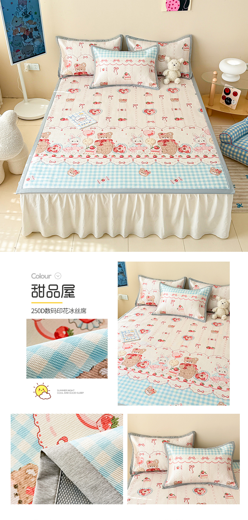 商品名称:懒猫家纺 2025春夏新款250D数码印花冰丝席凉席席子 甜品屋