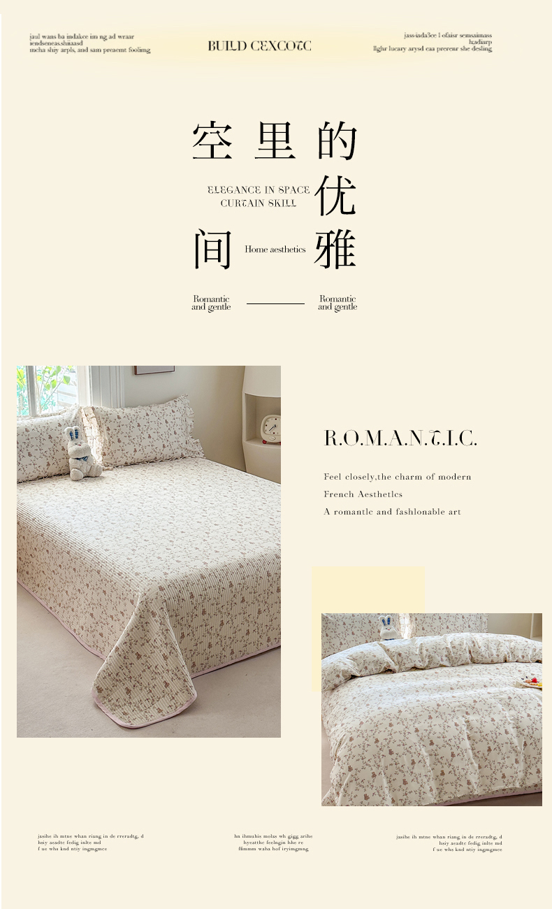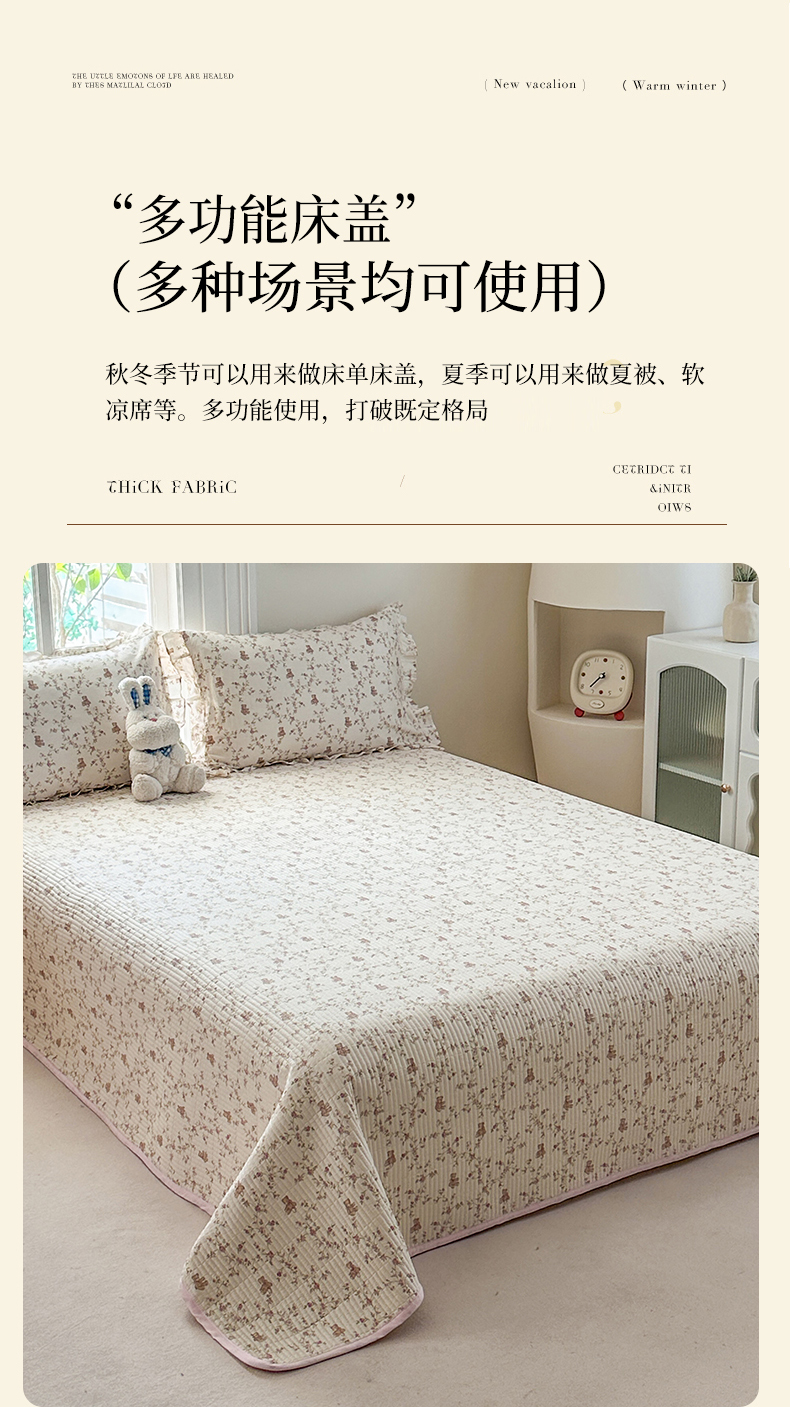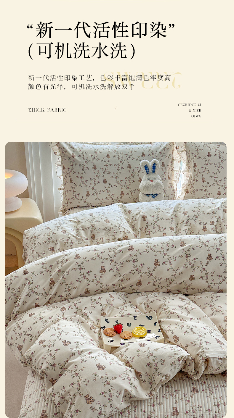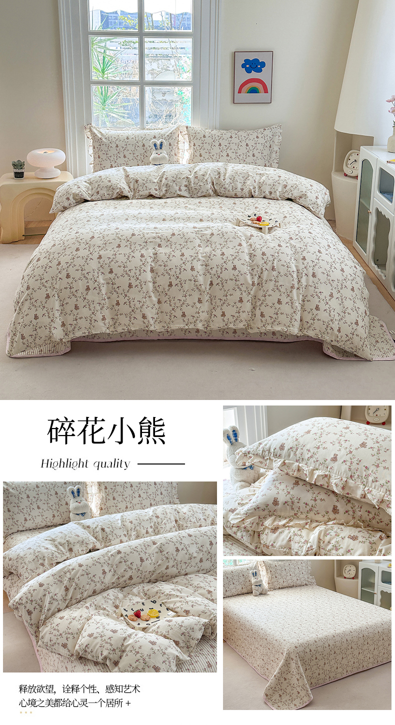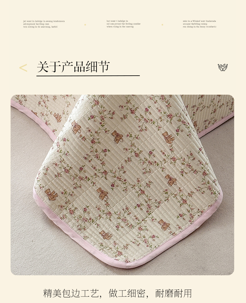 嘉汀兰家居 2025新款13372单面全棉高温砂洗绗缝单床盖,床盖四件套(同款花边被套) 碎花小熊