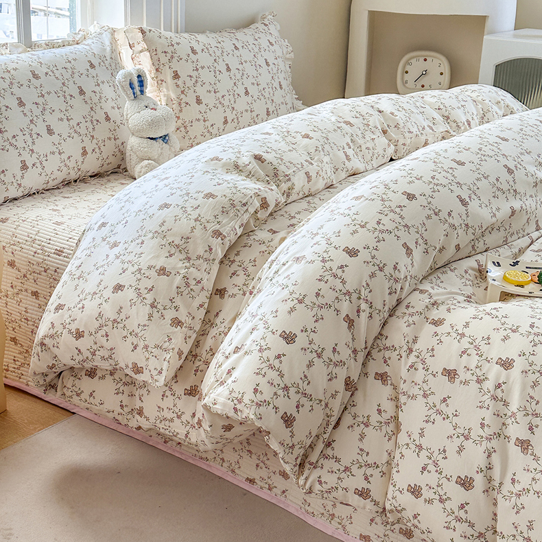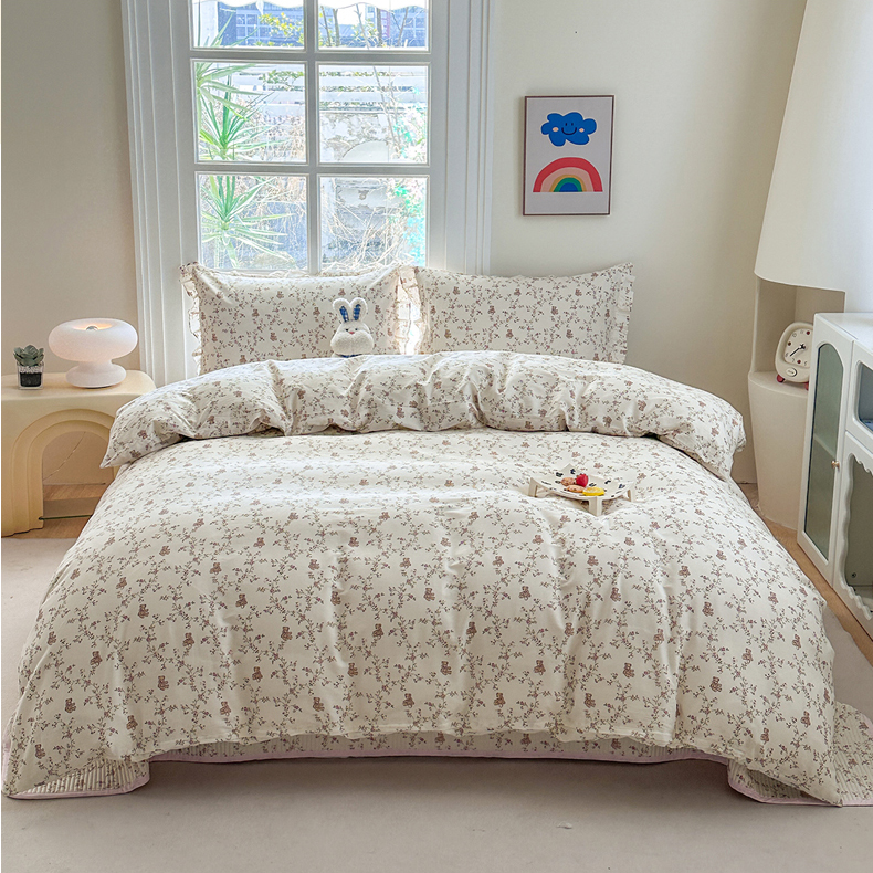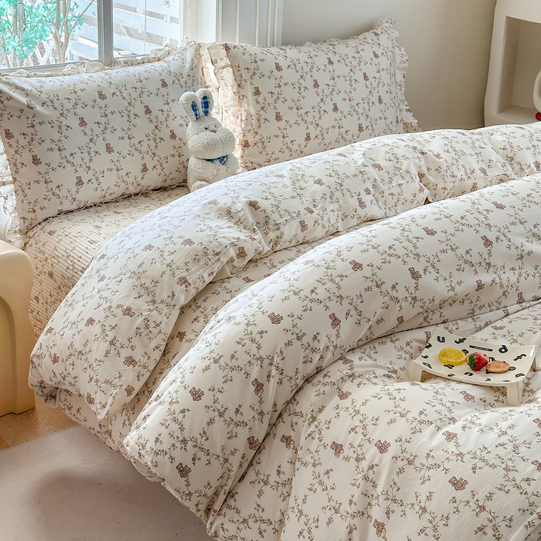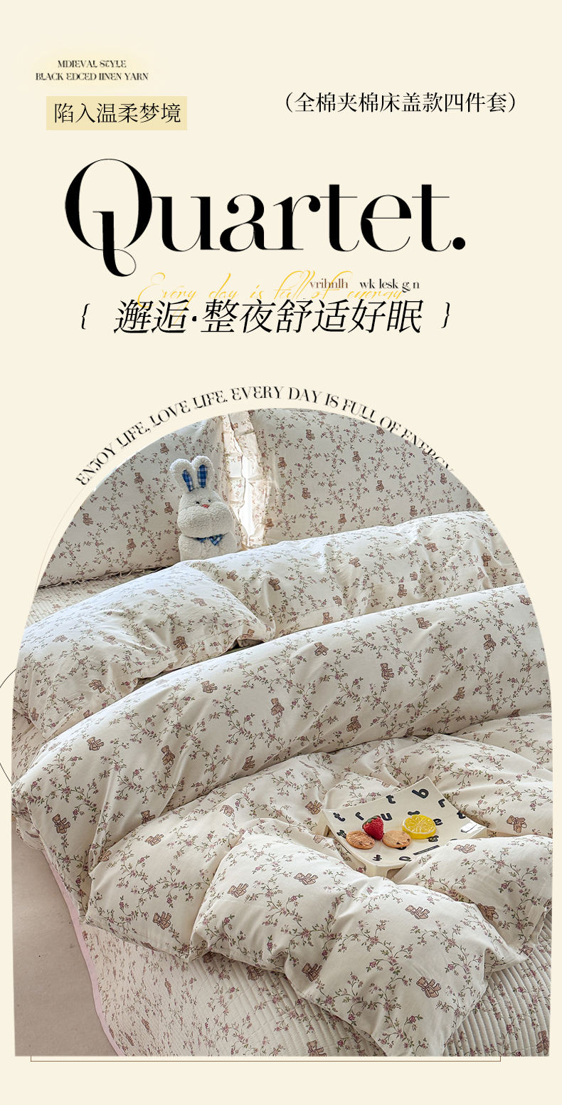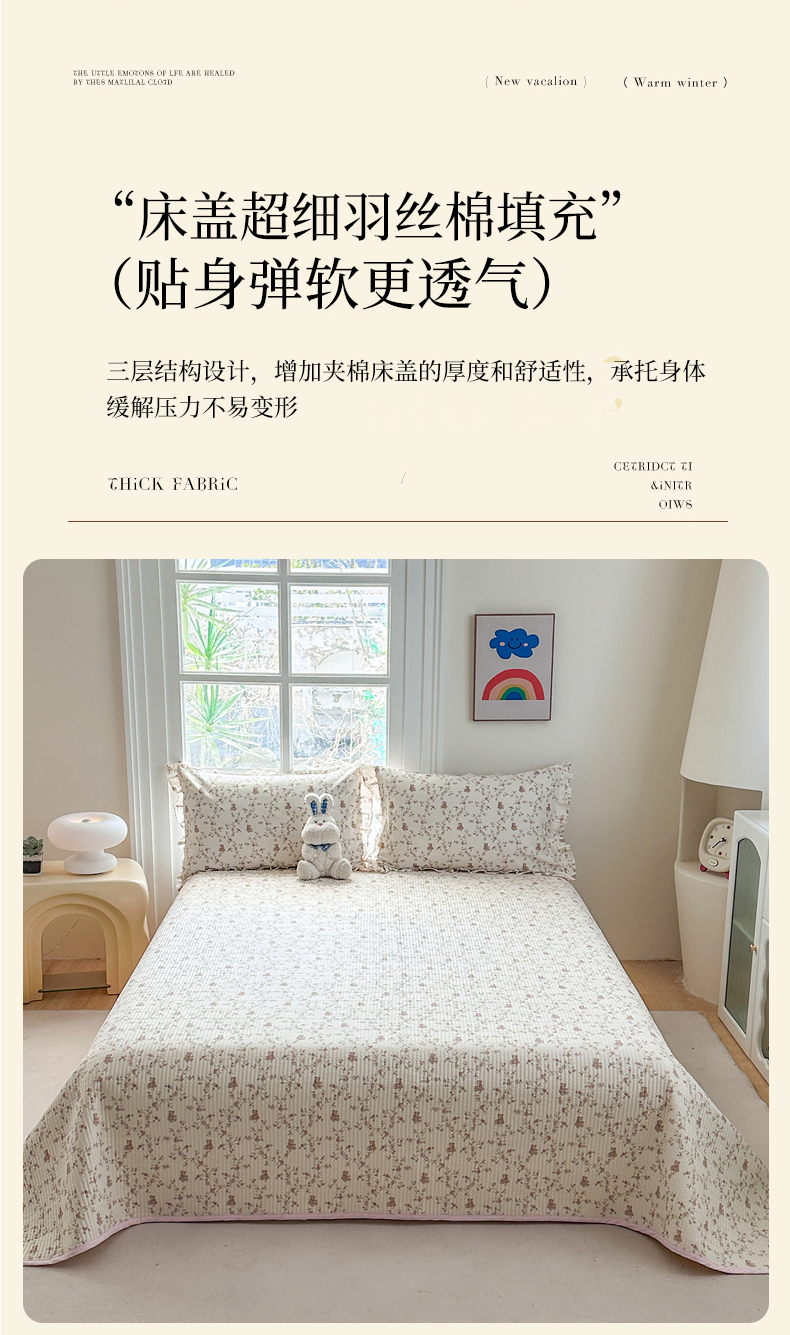 嘉汀兰家居 2025新款13372单面全棉高温砂洗绗缝单床盖,床盖四件套(同款花边被套) 碎花小熊