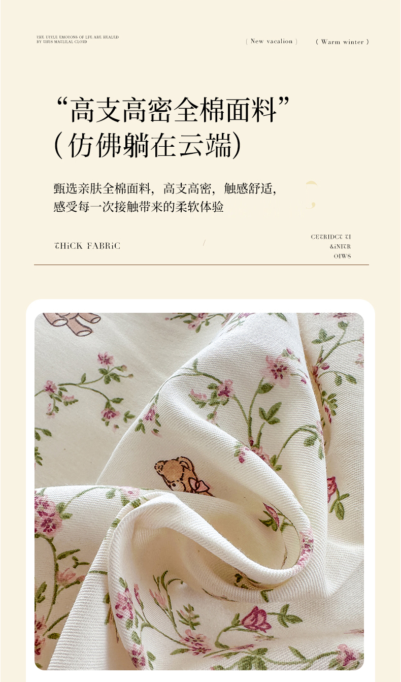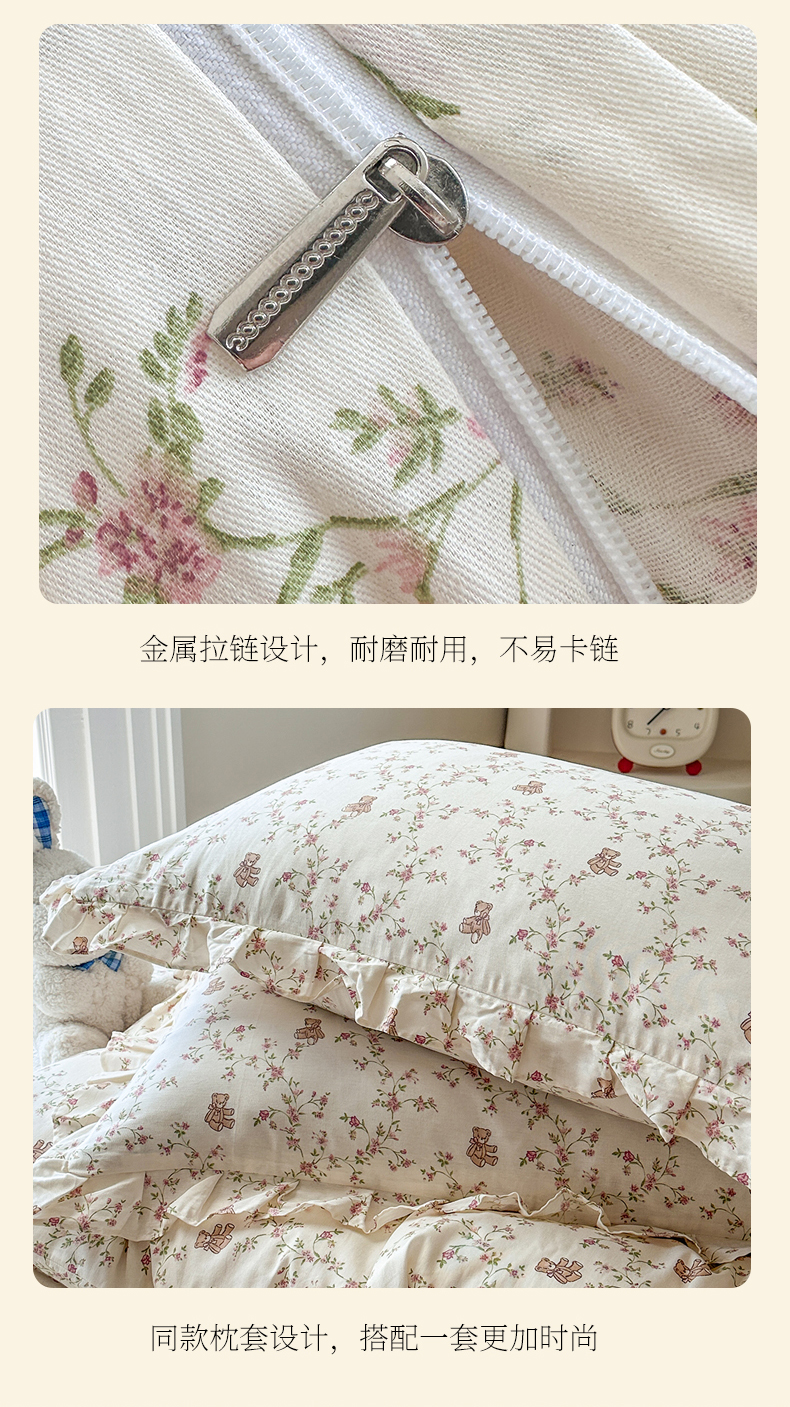 • 91家纺网 家纺一手货源 找家纺 嘉汀兰家居 2025新款13372单面全棉高温砂洗绗缝单床盖,床盖四件套(同款花边被套) 碎花小熊