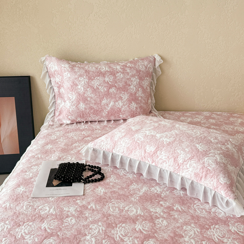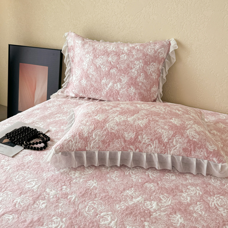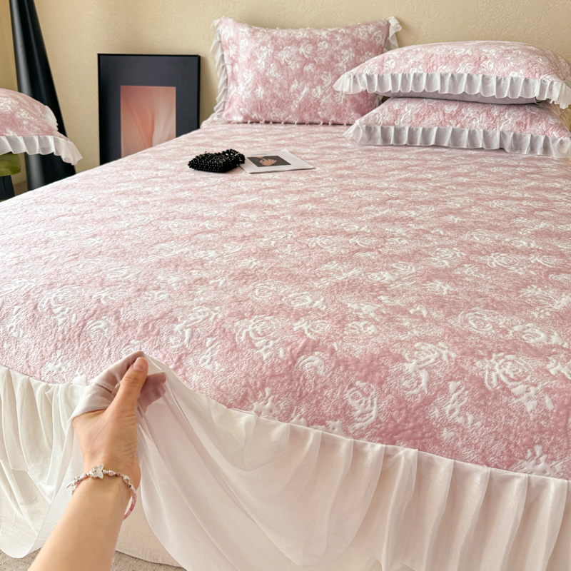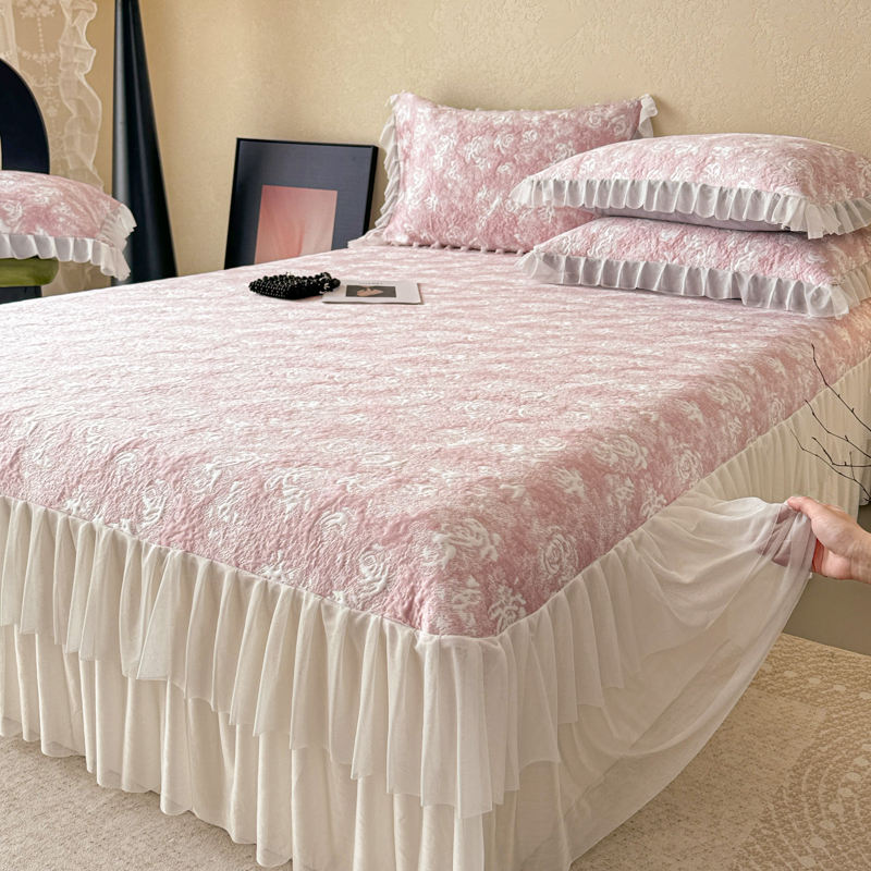 商品名称:典曼家纺 2025春夏新款凉感提花洛可可系列床裙款凉席席子 洛可可-粉