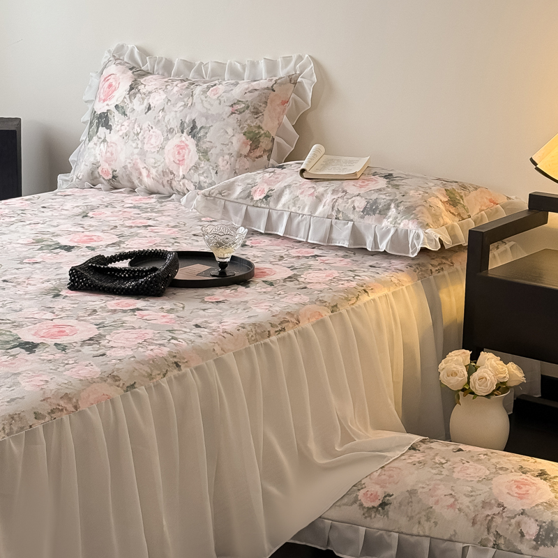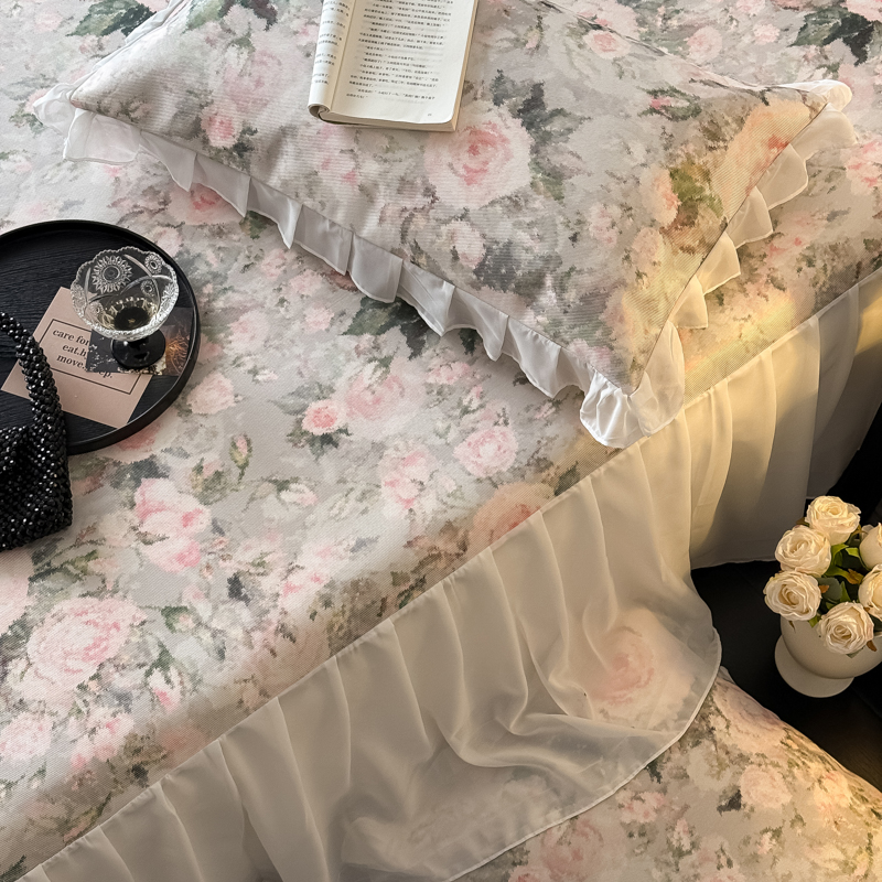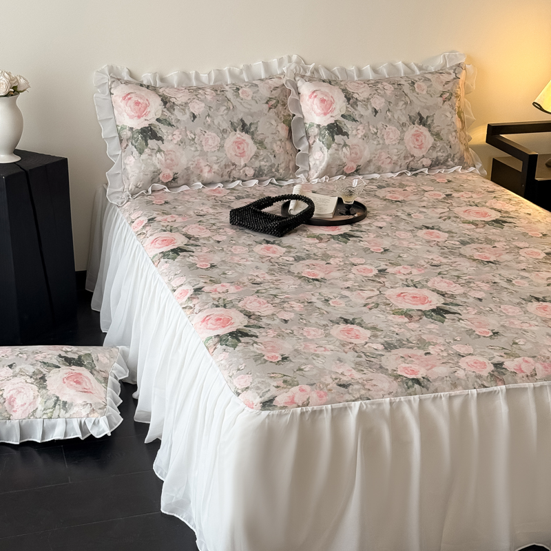 商品名称:典曼家纺 2025春夏新款高精密800D数码印花冰丝雪纺床裙款凉席席子 玉瑾