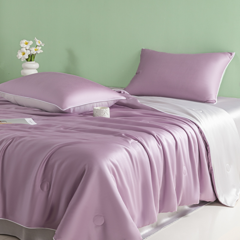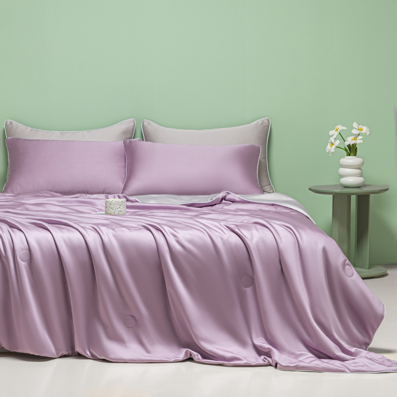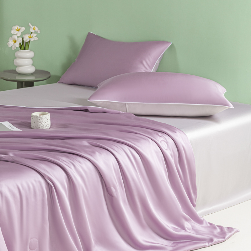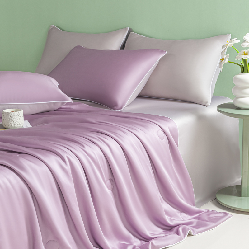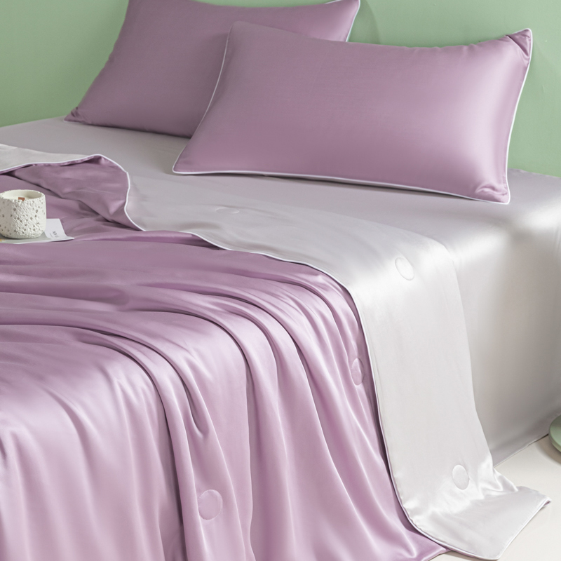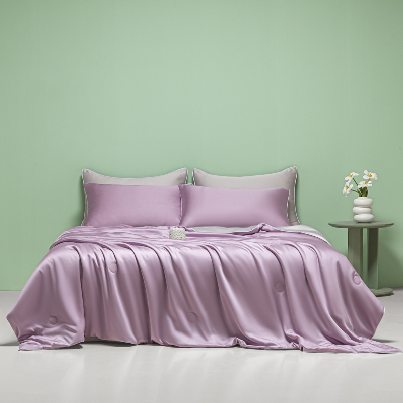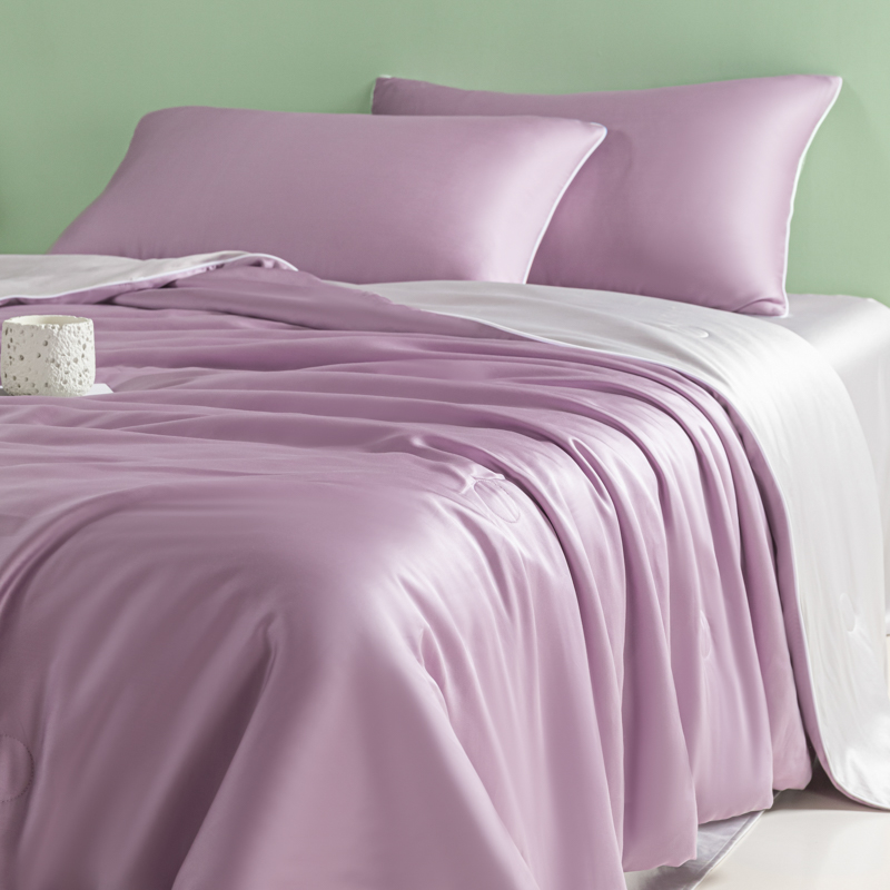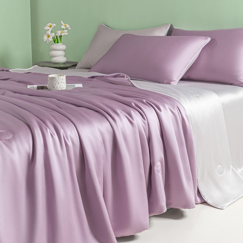 当前位置: 91家纺网 > 商品网购 > 床品套件 > 四件套 > 夏被四件套 > 爱彼家纺 2025夏季新款麻绳款冰丝夏被夏凉被空调被四件套-风格二 麻绳款夏被-风信紫+青灰