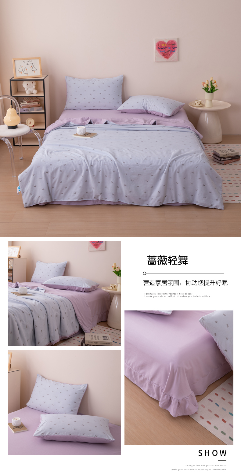 (总)南北家居 2025新款针织棉双层纱夏被四件套,白点小熊,晨露波点,雏菊低语,呆呆熊,芬芳物语,粉色小花,幻紫蝶影,蔷薇轻舞,樱落,钟意,紫纱绮梦