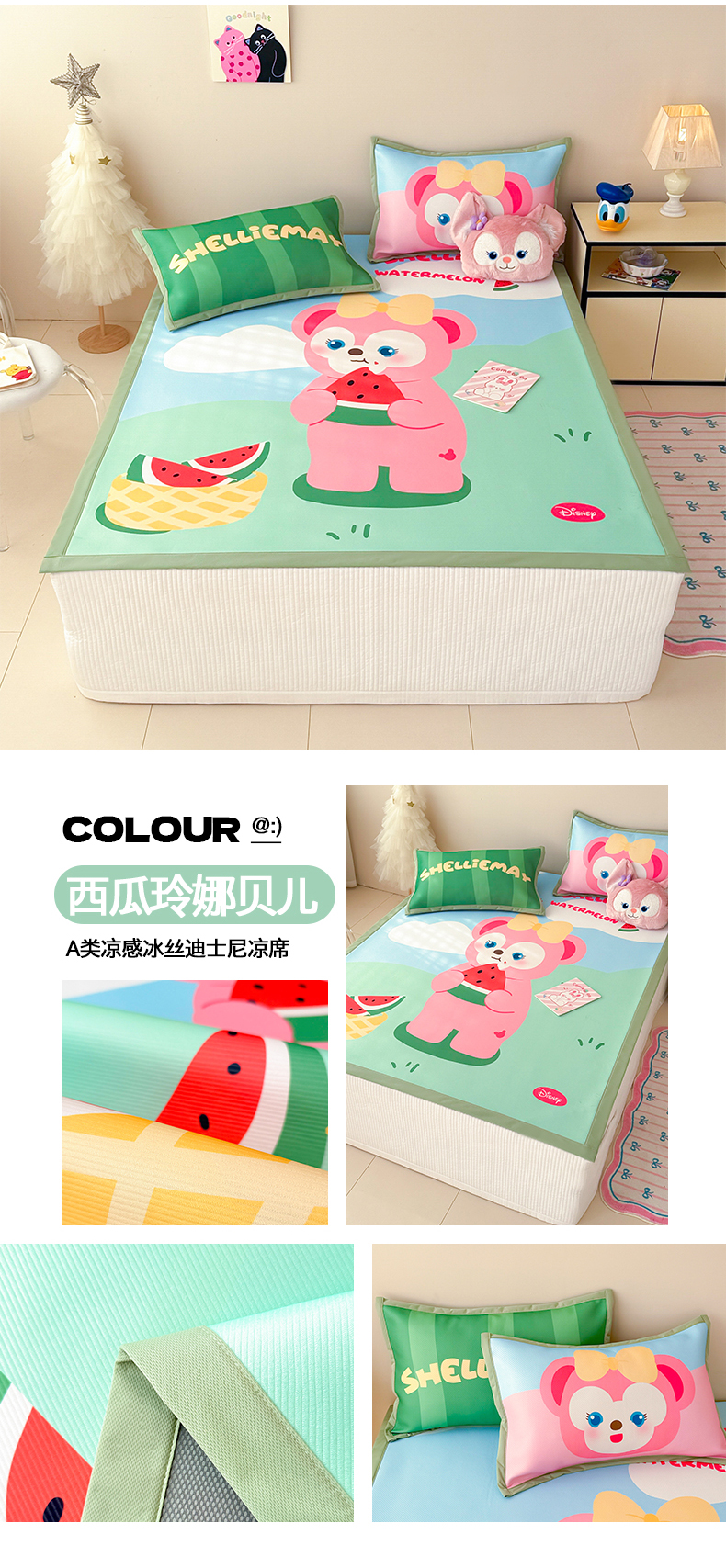 商品名称:典曼家纺 2025春夏新款A类凉感冰丝迪士尼凉席席子 西瓜玲娜贝儿