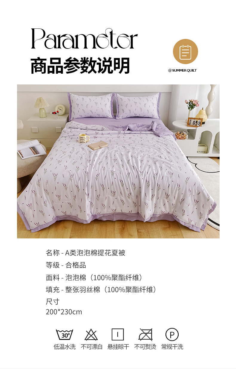商品名称:南北家居 2025新款亲肤泡泡棉提花夏被 紫色香