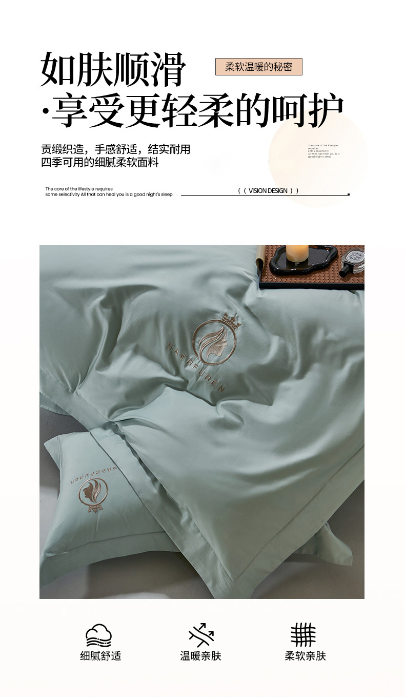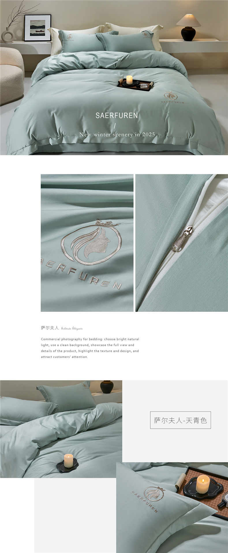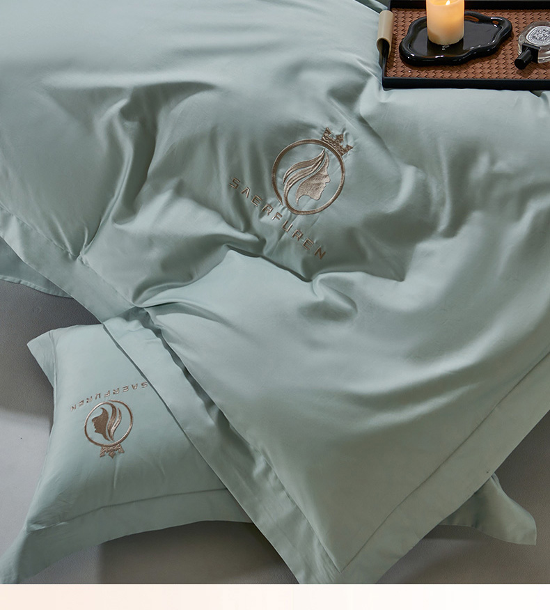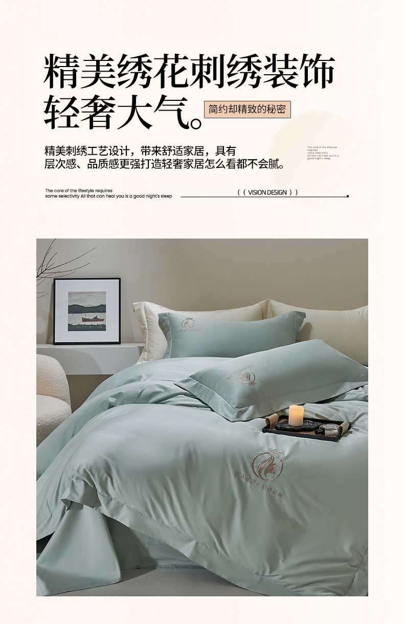 当前位置: 91家纺网 > 商品网购 > 床品套件 > 四件套 > 长绒棉四件套 > 憨豆家纺 2025新款全棉纯棉长绒棉四件套刺绣绣花纯色贡缎床笠款高端礼盒装 萨尔夫人-天青色