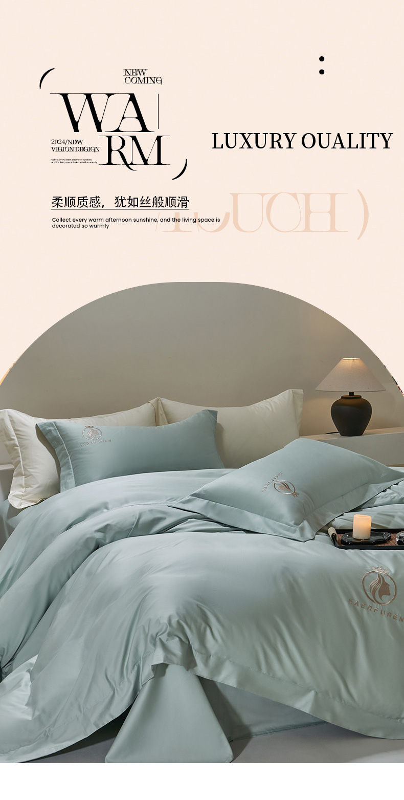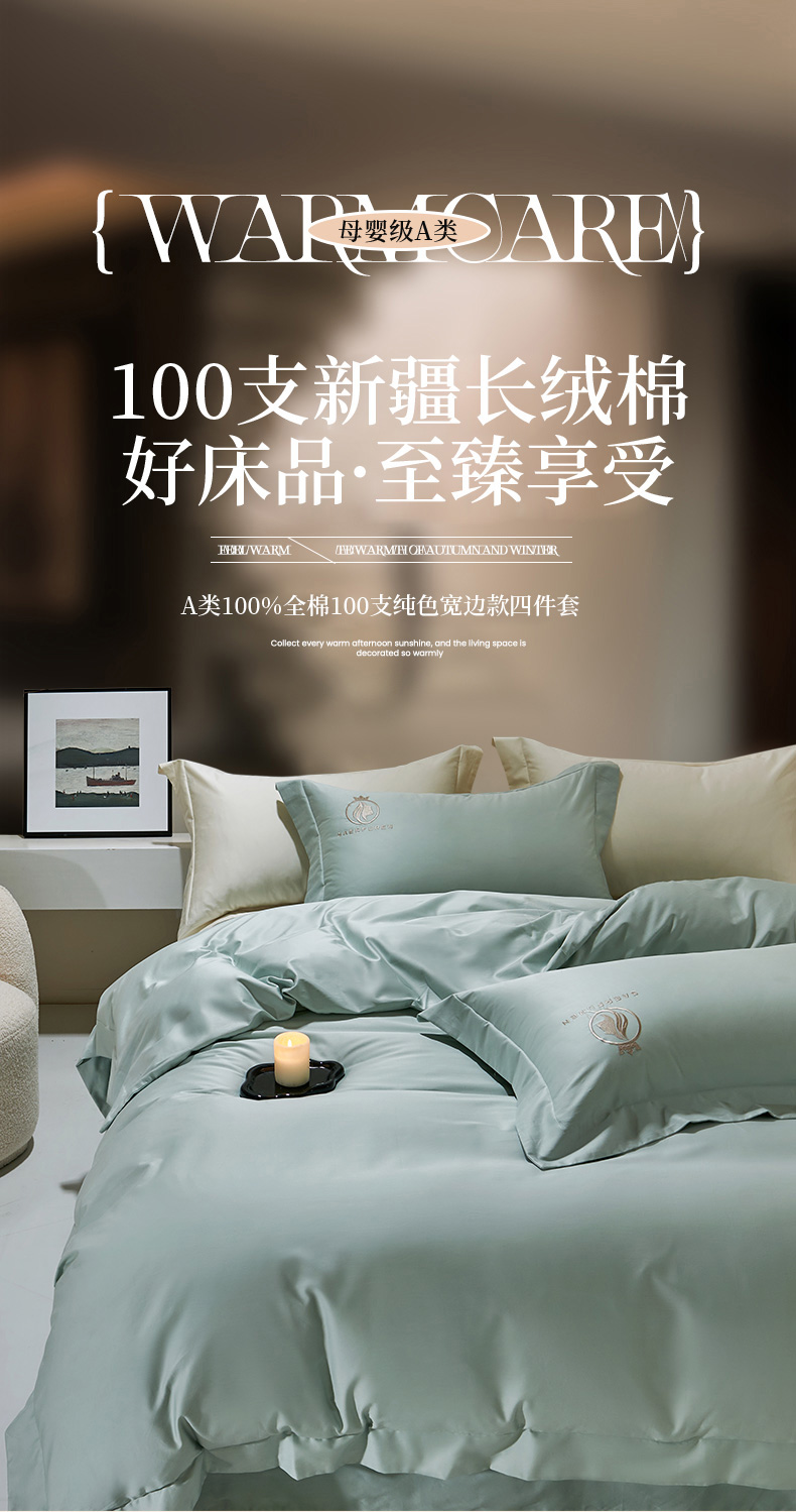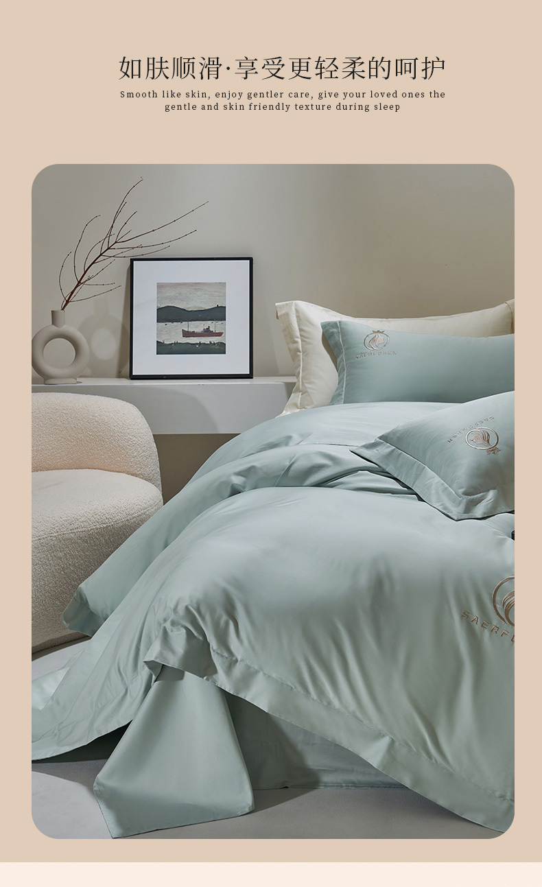 当前位置: 91家纺网 > 商品网购 > 床品套件 > 四件套 > 长绒棉四件套 > 憨豆家纺 2025新款全棉纯棉长绒棉四件套刺绣绣花纯色贡缎床笠款高端礼盒装 萨尔夫人-天青色