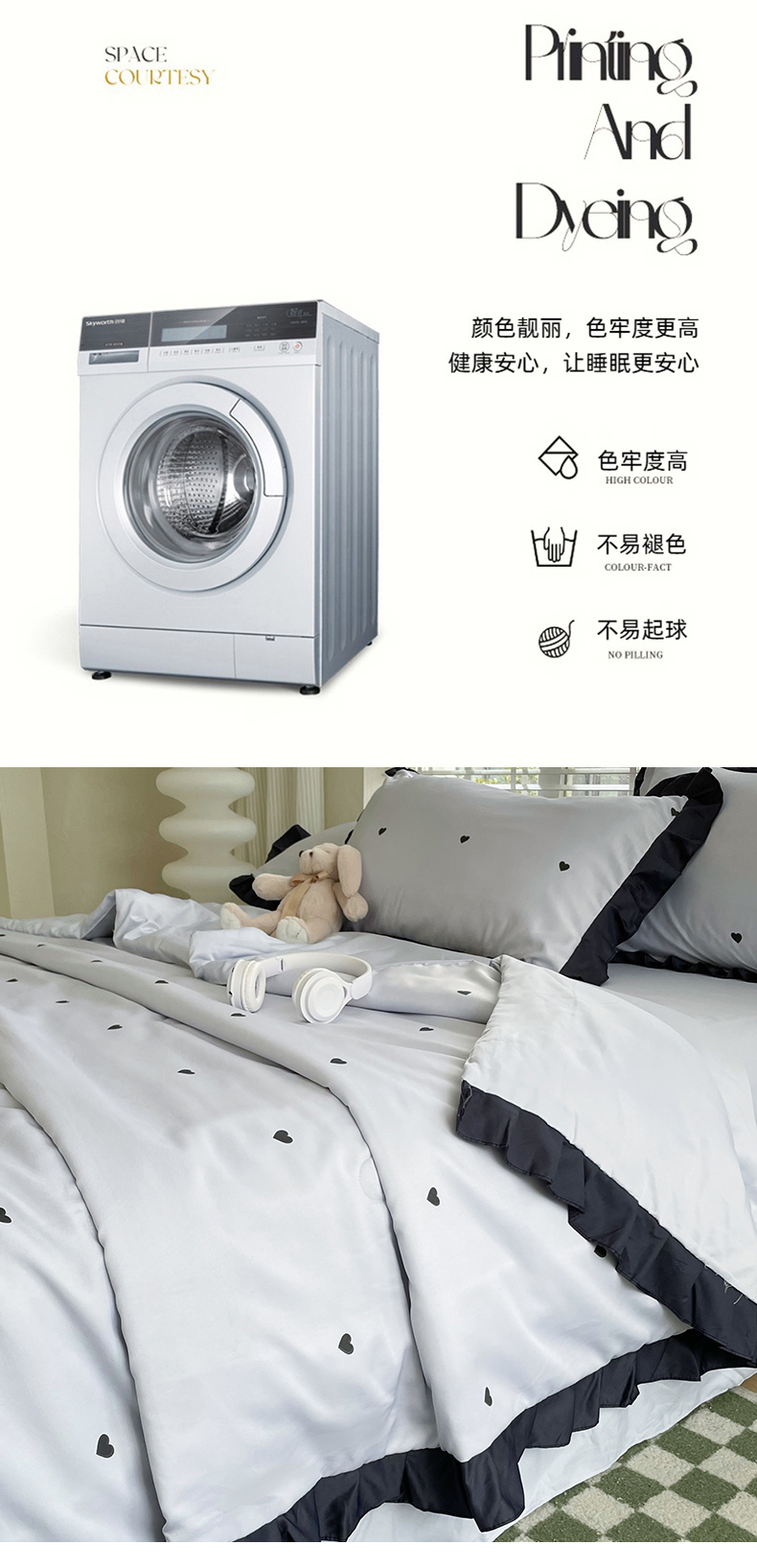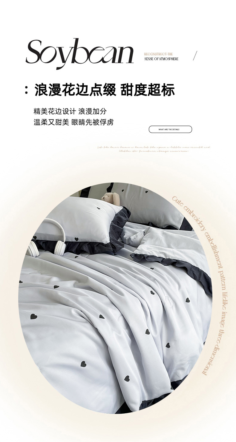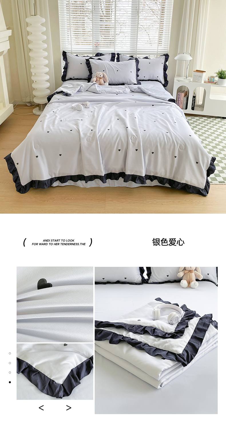 商品名称:绣女坊 2025新款水洗天丝夏被四件套 银色爱心