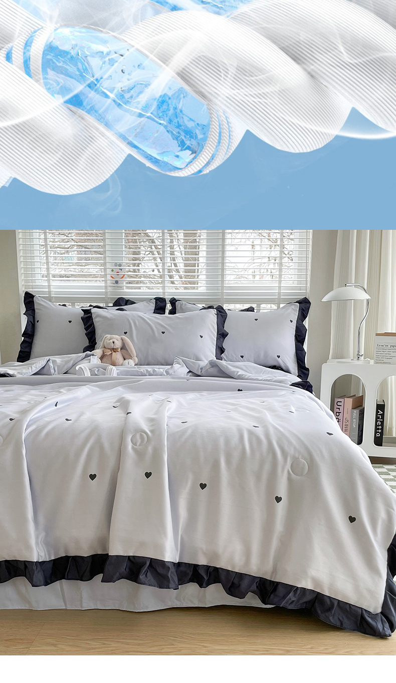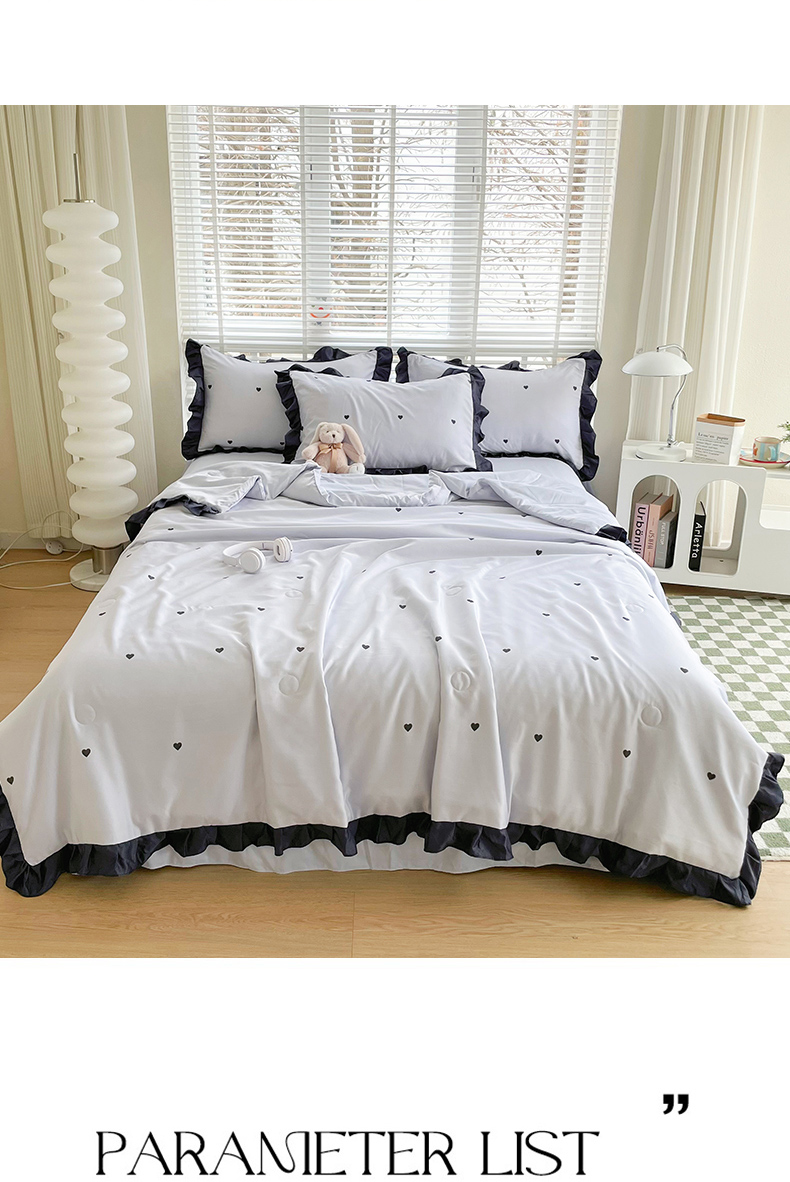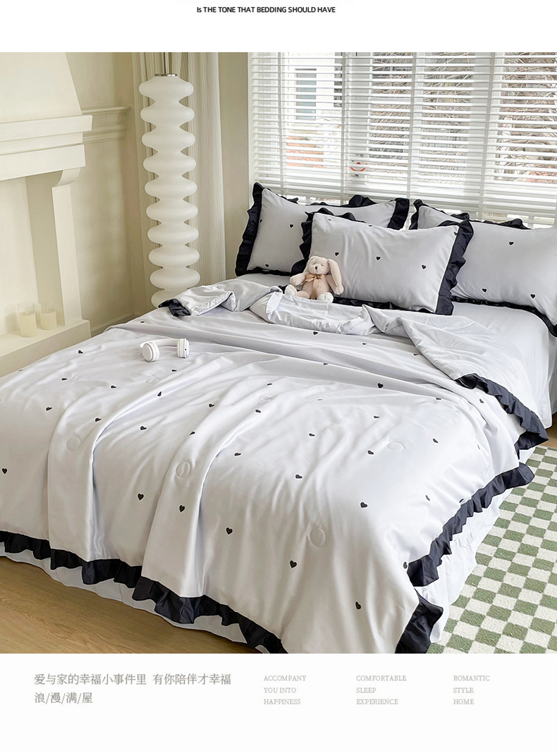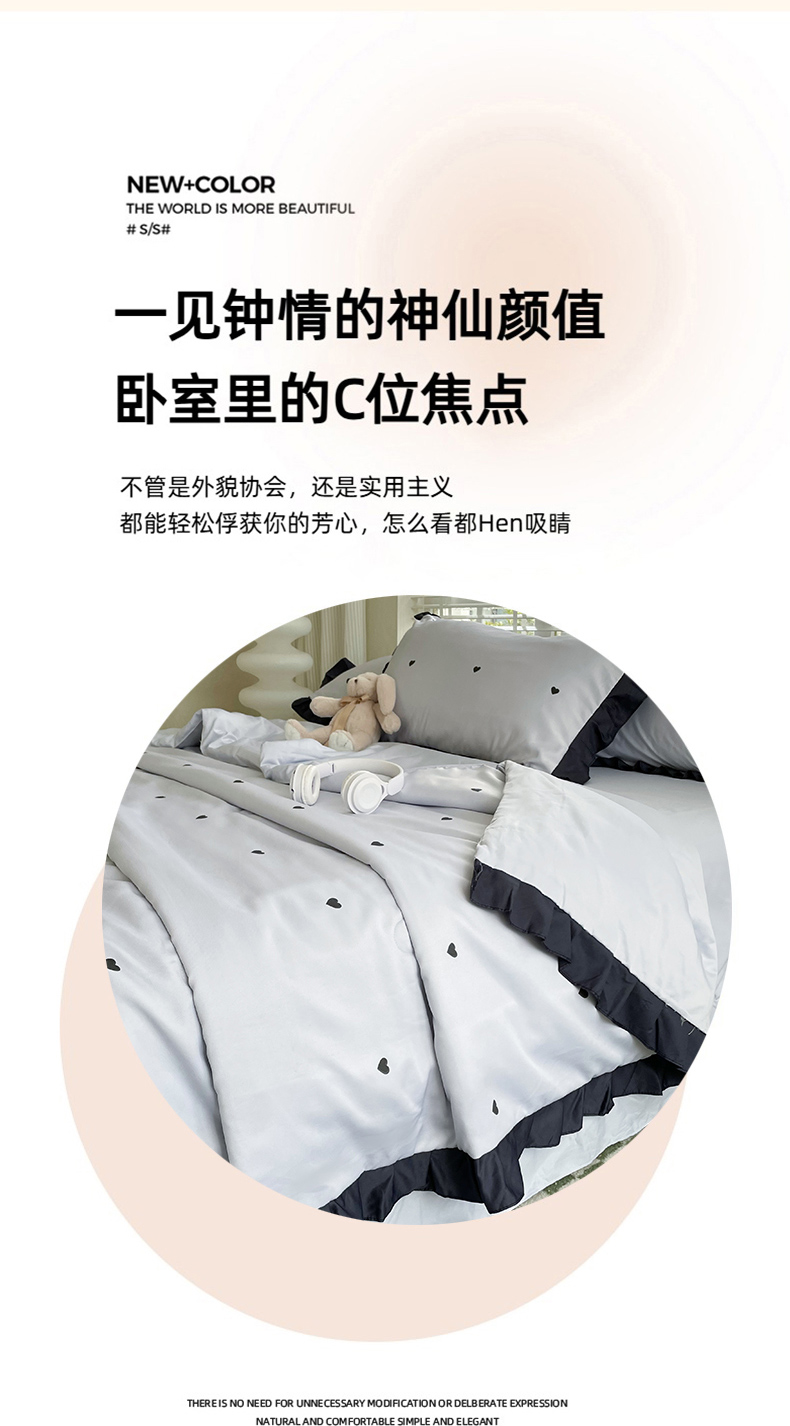 商品名称:绣女坊 2025新款水洗天丝夏被四件套 银色爱心