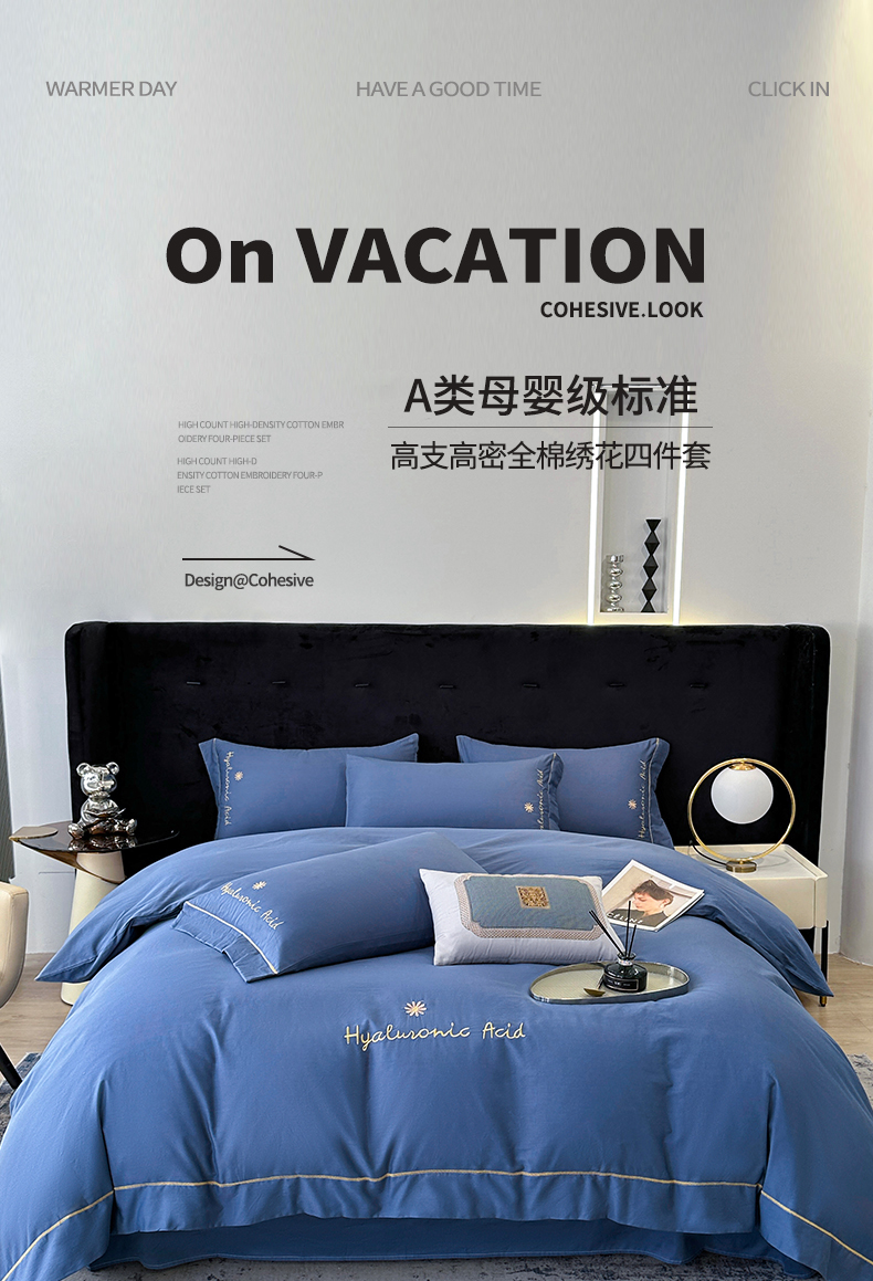 当前位置: 91家纺网 > 商品网购 > 床品套件 > 四件套 > 全棉普通四件套 > 宇彬家纺 2025直播新款13374全棉纯棉母婴级压线一字绣纯色刺绣四件套全棉纯棉贡缎新疆长绒字母款铂金系列 铂金 宾利蓝