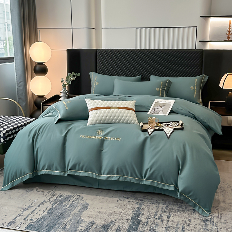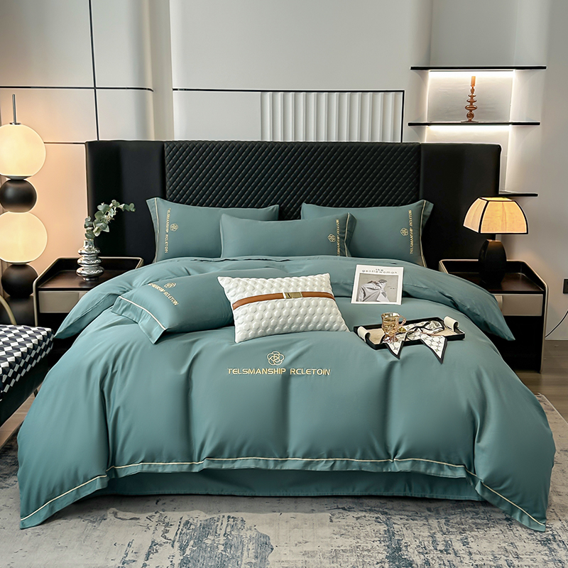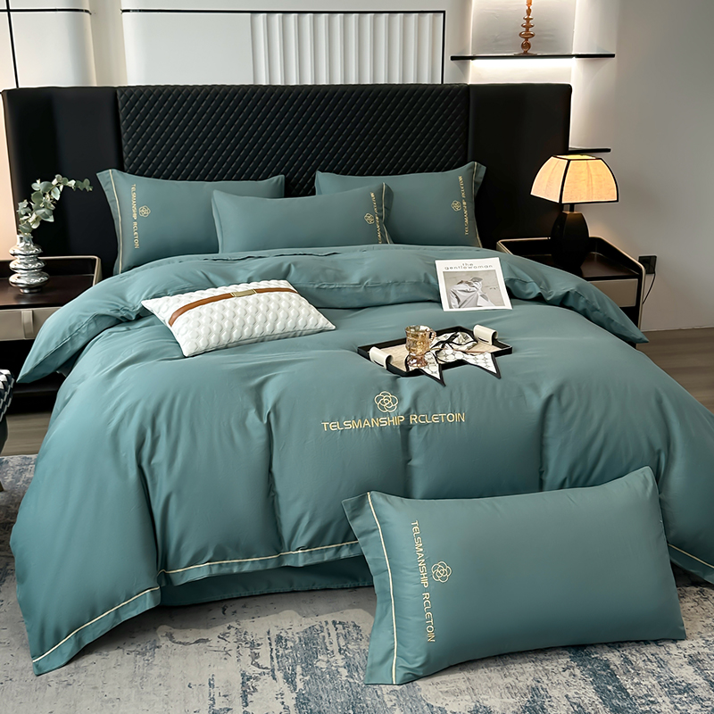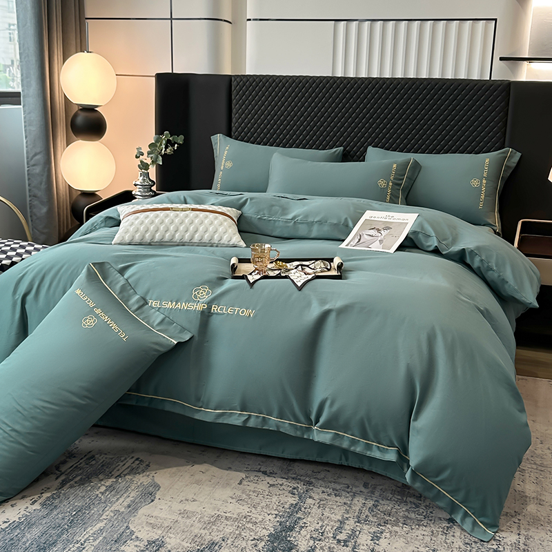 当前位置: 91家纺网 > 商品网购 > 床品套件 > 四件套 > 全棉普通四件套 > 宇彬家纺 2025直播新款13374全棉纯棉母婴级压线一字绣纯色刺绣四件套全棉纯棉贡缎新疆长绒字母款铂金系列 茶花-摩卡绿