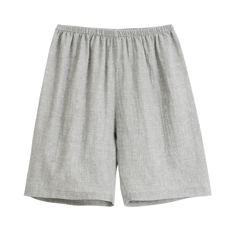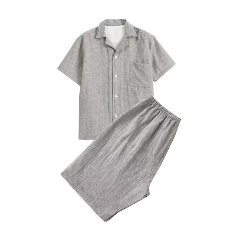商品名称:伊嫚家居 2025新款日式无印风良品全棉双层纱睡衣女纯棉短袖短裤睡衣夏季纯棉短袖家居服 灰色波点男