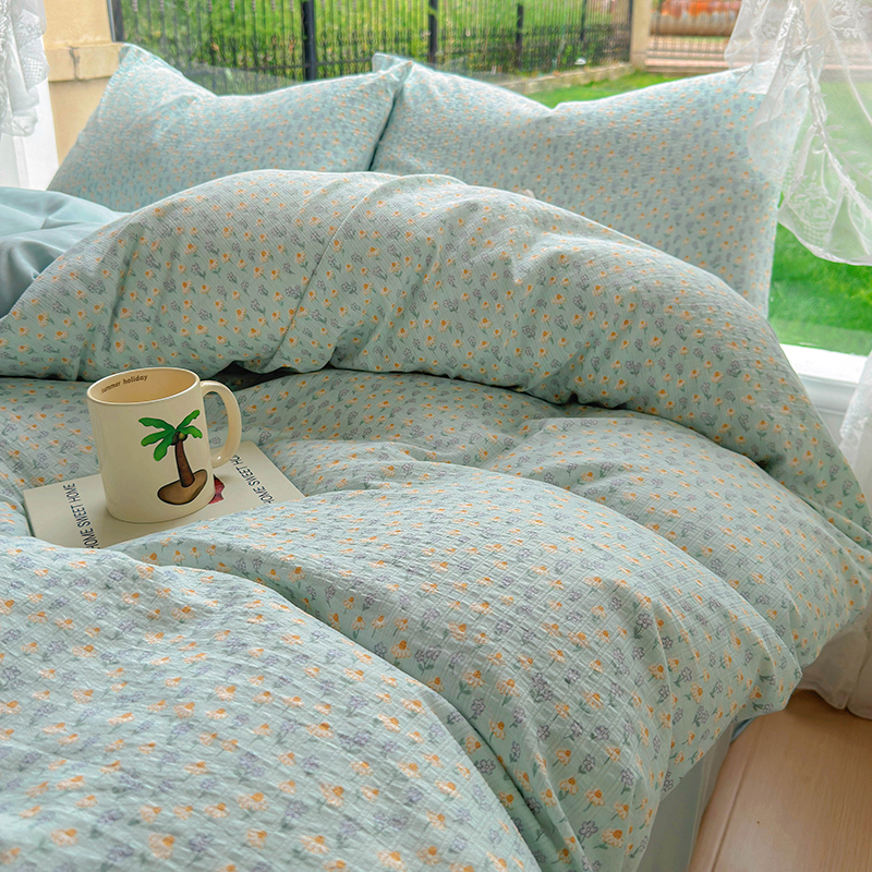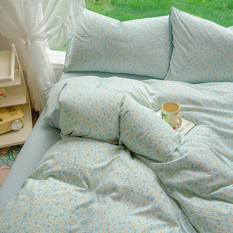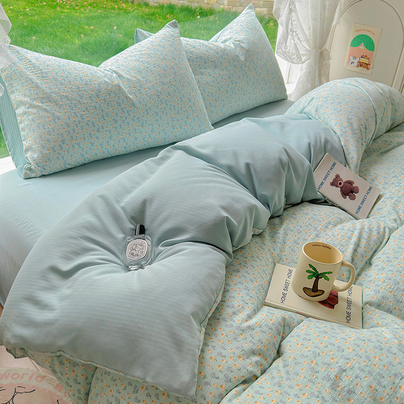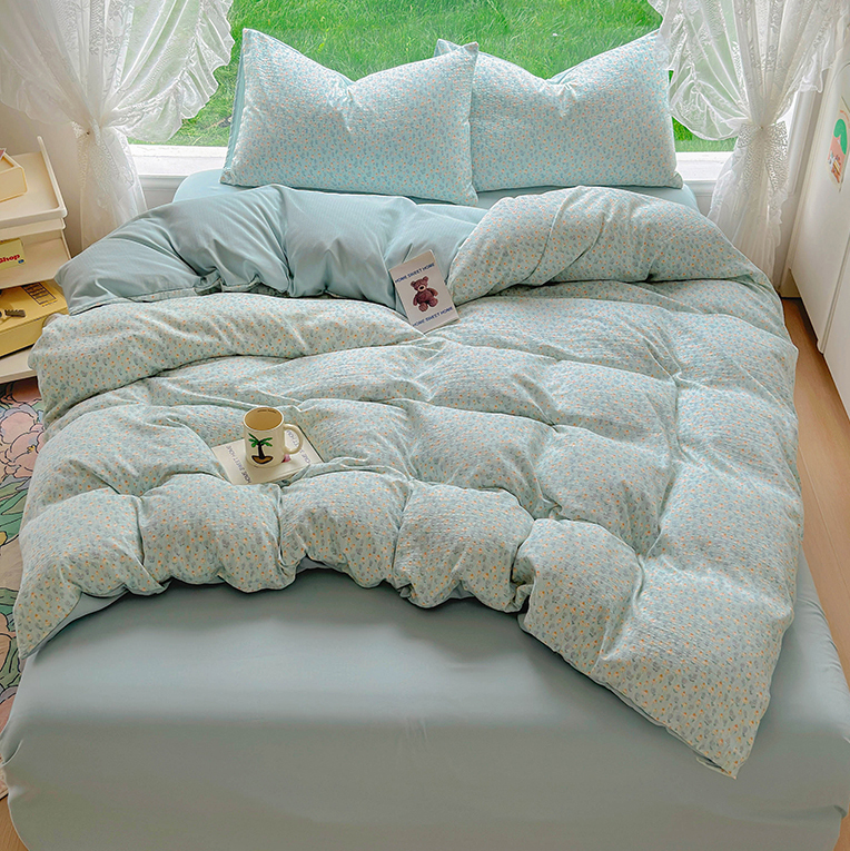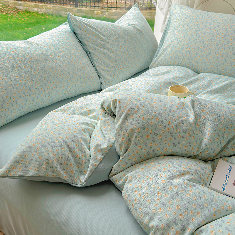 商品名称:王朝国际 2025新款直播热款有氧提花有氧双层纱碎花单被套 奶蓝泡芙
