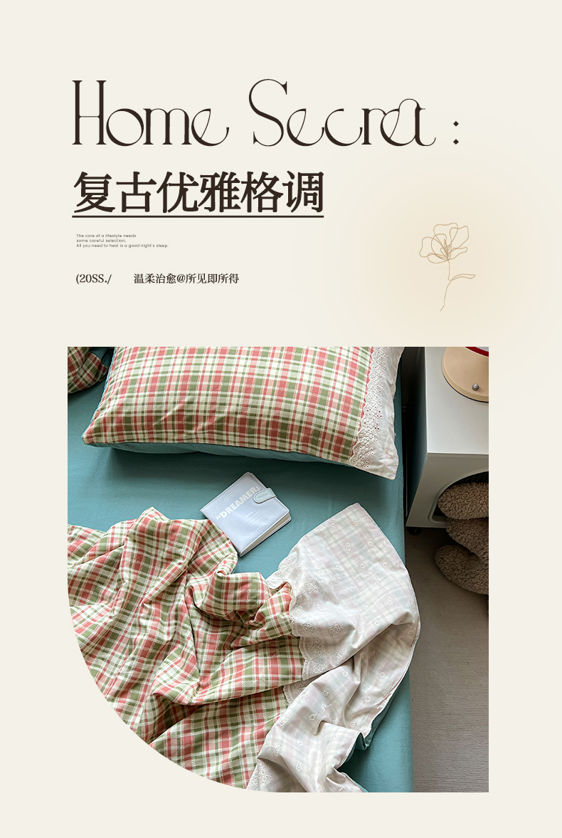 (总)妖妖家纺 2025新款加厚全棉花边牛奶绒格子四件套,醋莓浆果,海川之境,焦糖松果,轻氧绿松,银灰流光,鸢尾之约