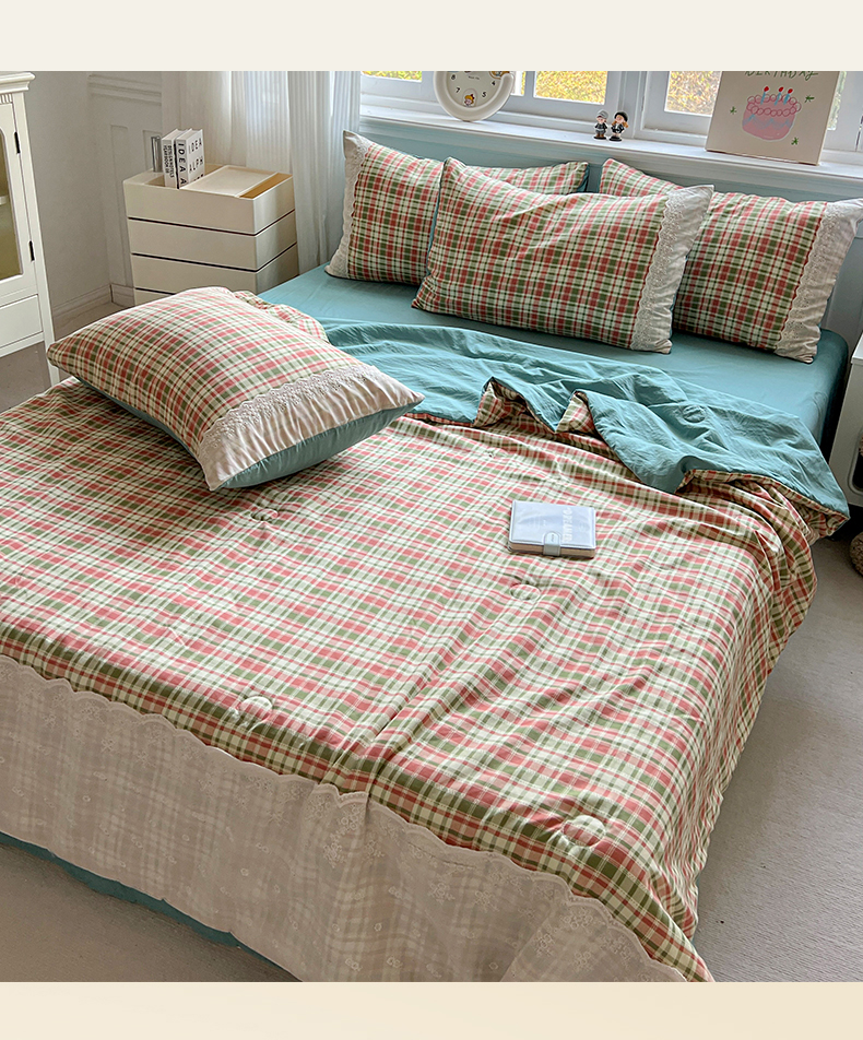 妖妖家纺 2025复古蕾丝公主糯糯夏凉被四件套 薄荷提米