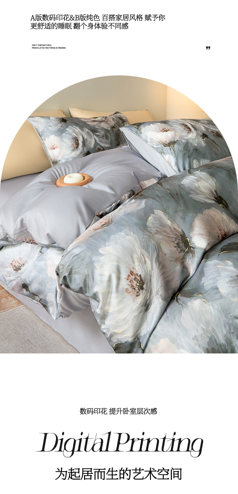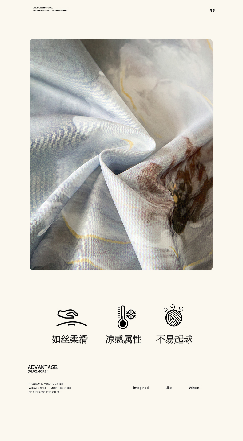 商品名称:帅露家纺 2025新款A类冰丝玉锦缎数码印花四件套 索莱娅灰