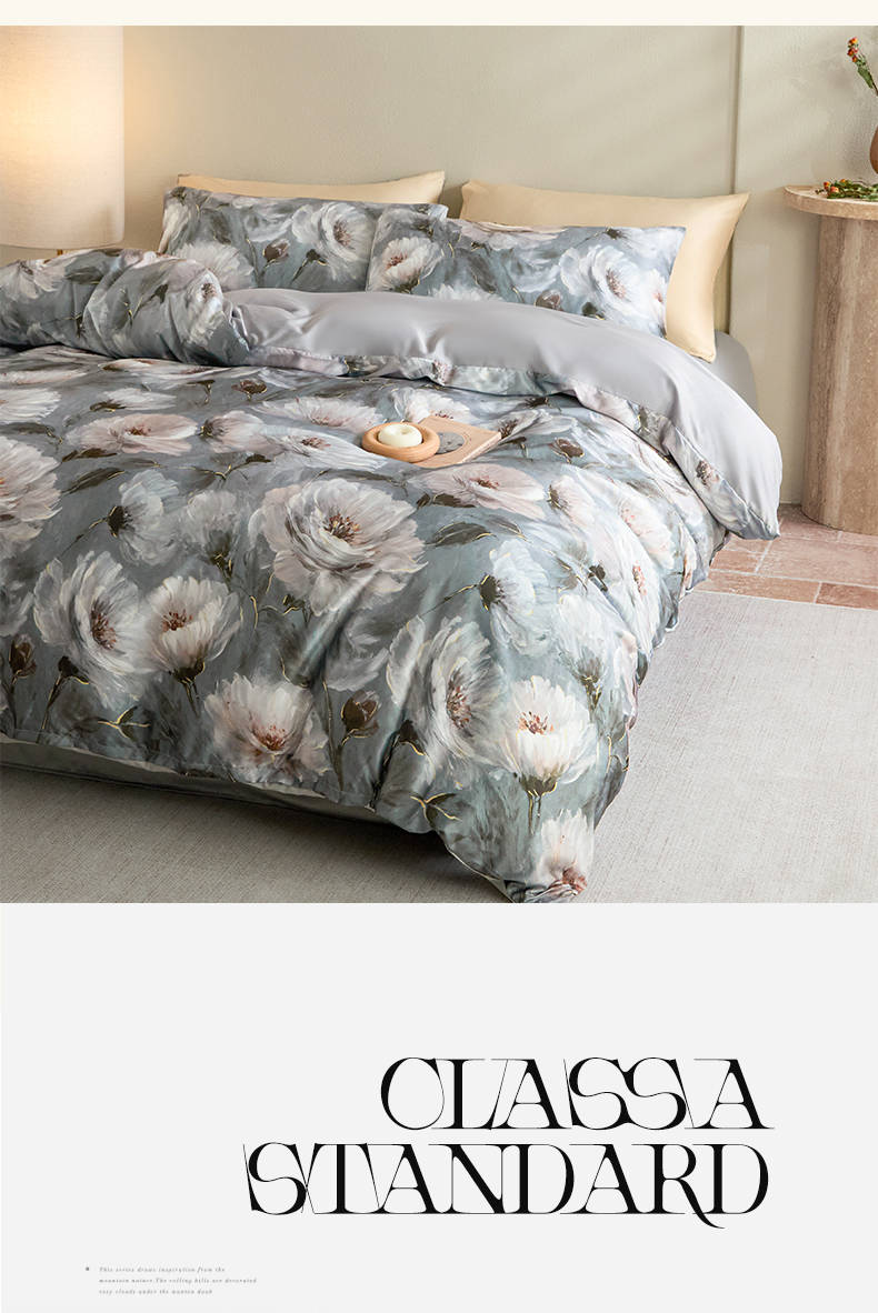 (总)帅露家纺 2025新款A类棉麻活性印染四件套系列,花间意境-红,花间意境-灰,花香满园-红,素锦-咖,香叶时代,映霜-灰,映霜-绿
