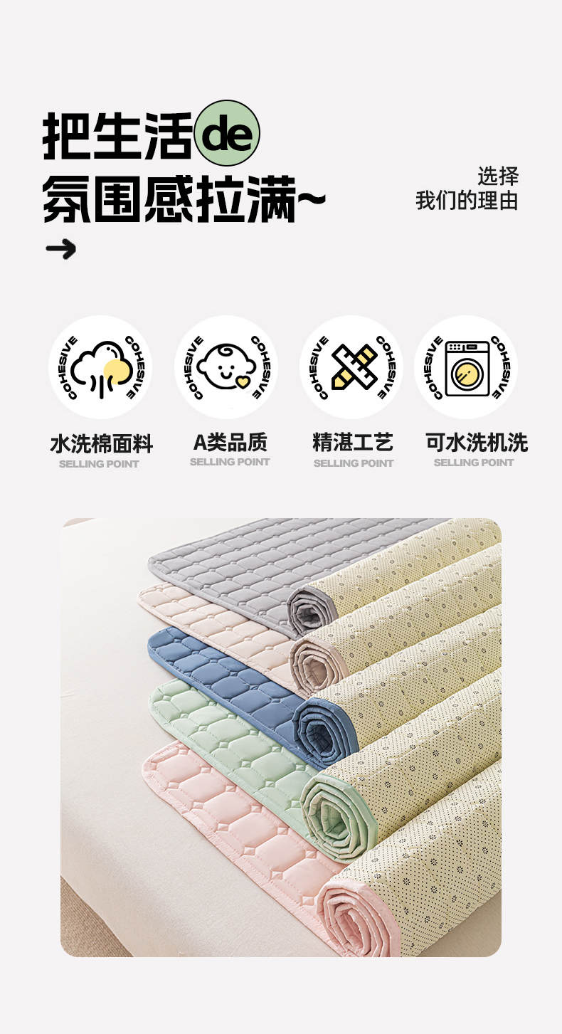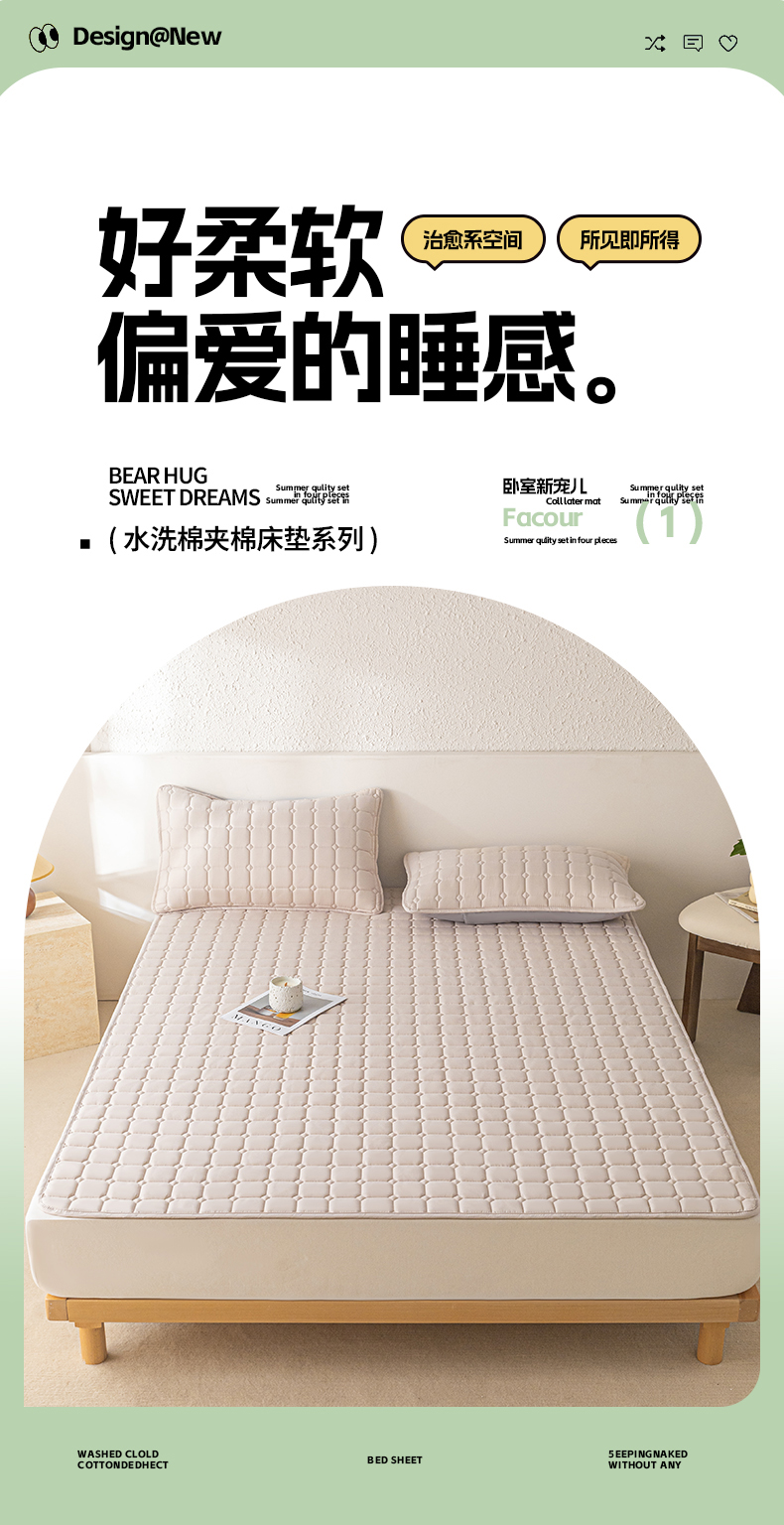 商品名称:(总)欧邦 2025春夏新款四季款无印风纯色水洗棉床褥榻榻米床垫