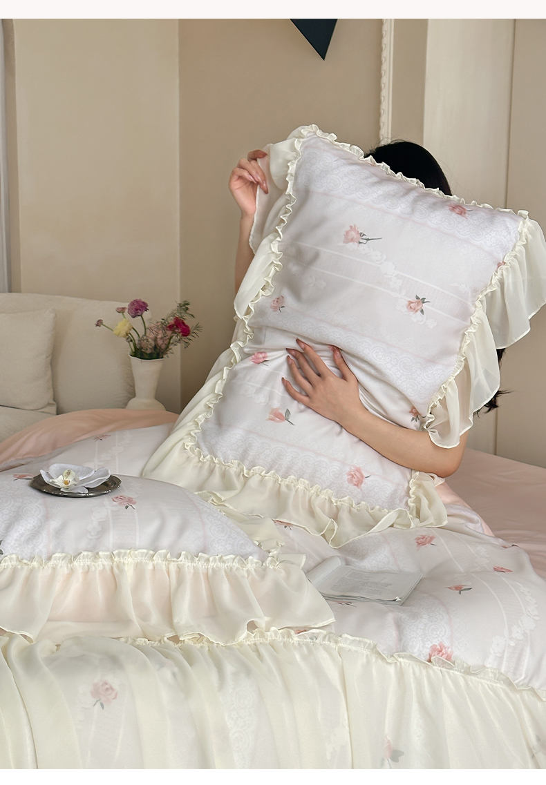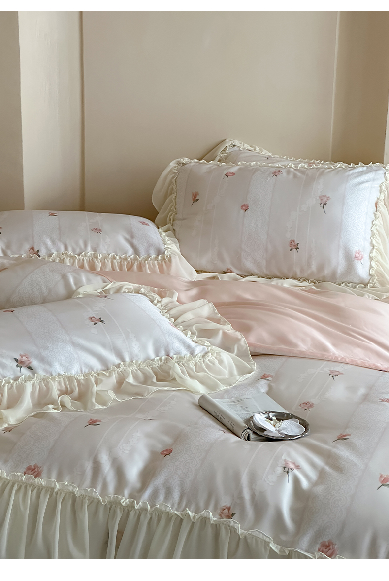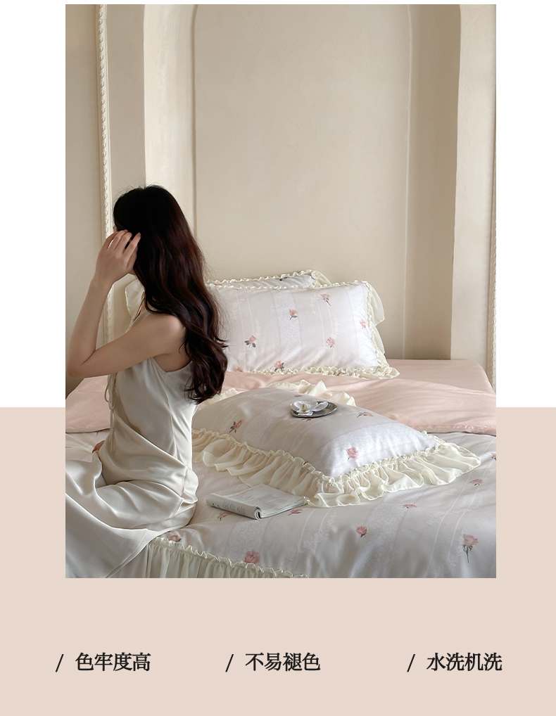 商品名称:卡巴伦家纺 2025新款天丝四件套-法式闺房风雪纺花边款【不得低于(店铺折后/券后) 标准:249元】 奢香-粉