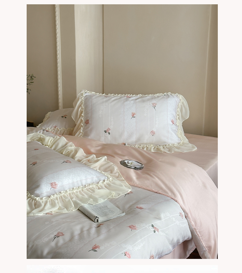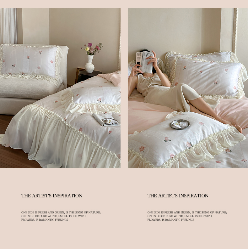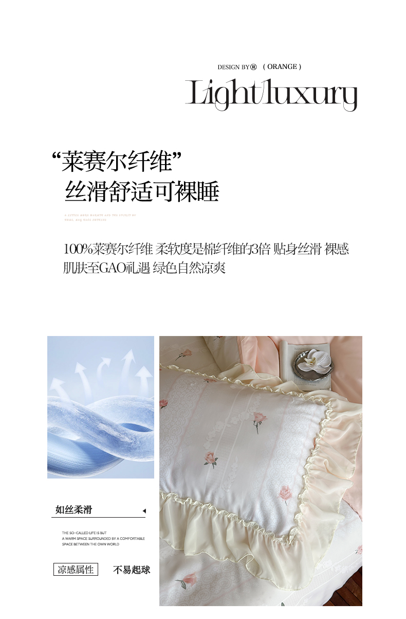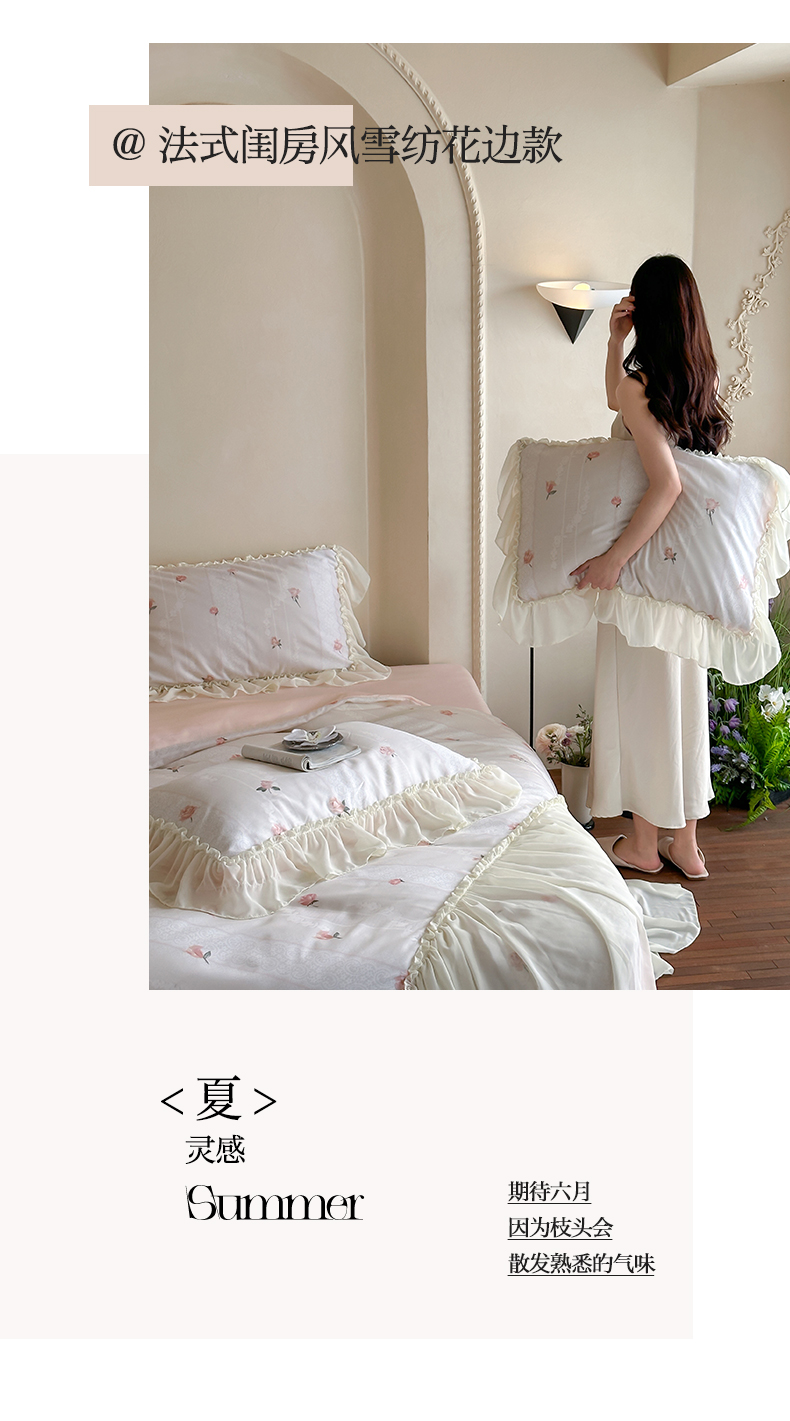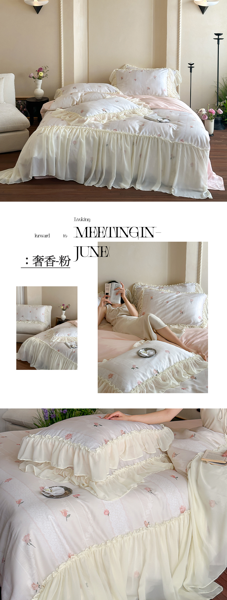 (总)卡巴伦家纺 2025新款天丝四件套-法式闺房风雪纺花边款【不得低于(店铺折后/券后) 标准:249元】,赫本,清风玉露,如愿-粉,如愿-兰,奢香-粉,奢香-兰