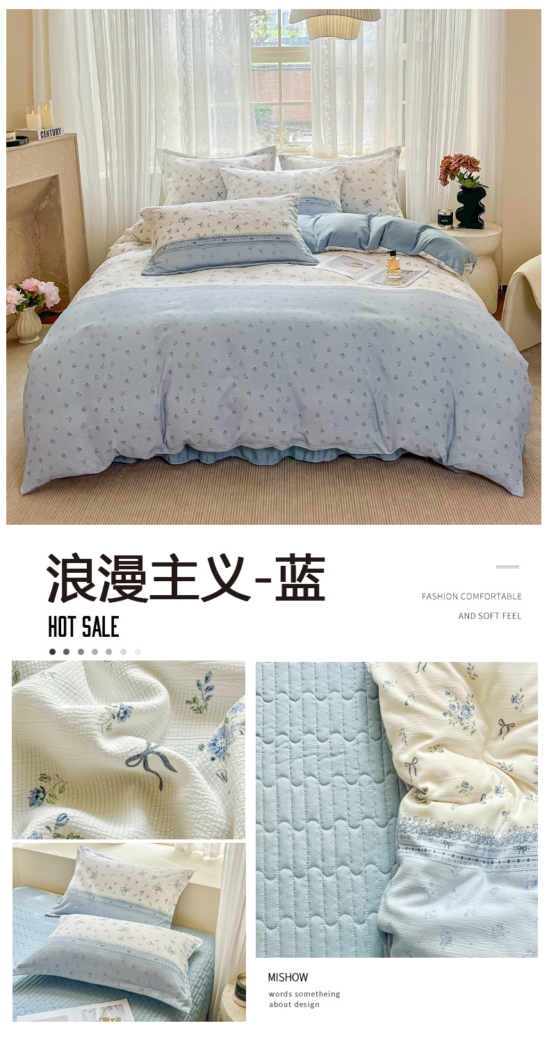 商品名称:2026春夏新款拼色提花双层纱古法水洗床盖四件套提花云感棉 浪漫主义蓝