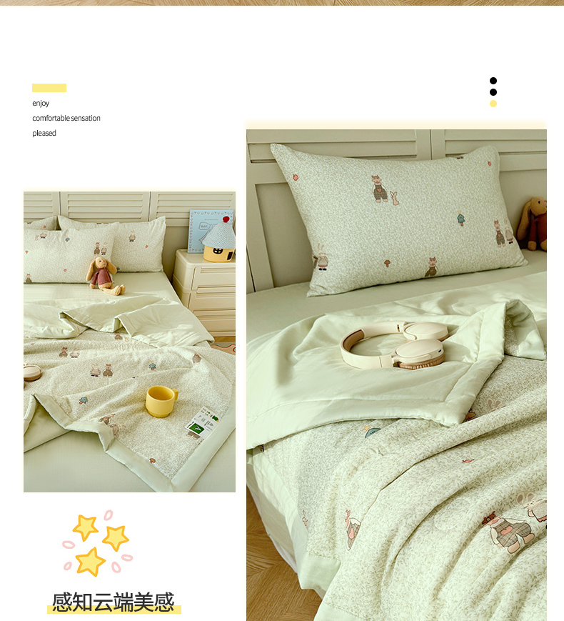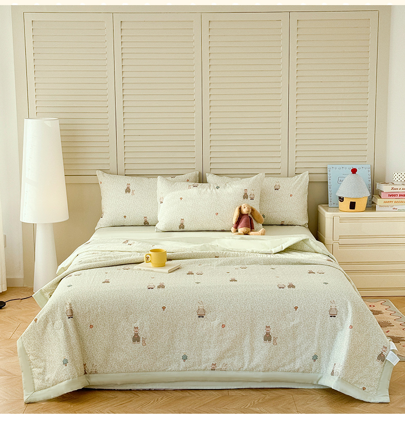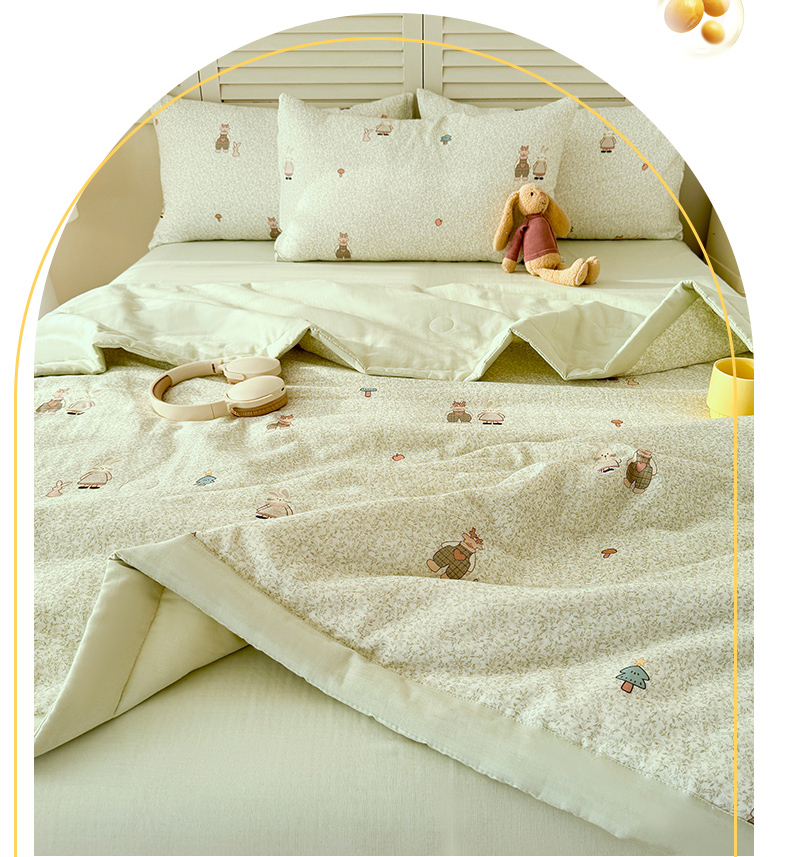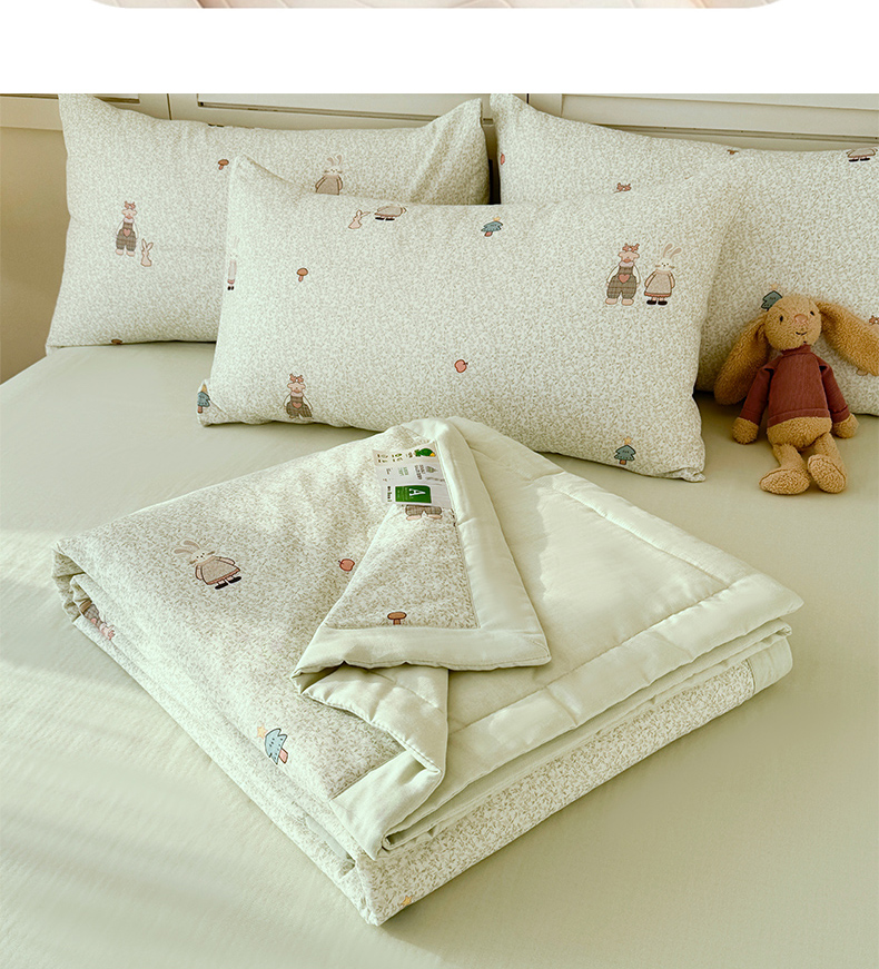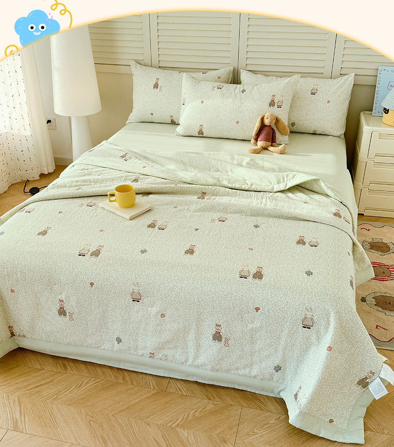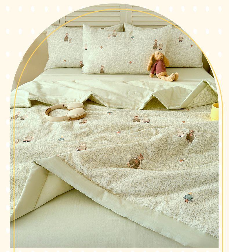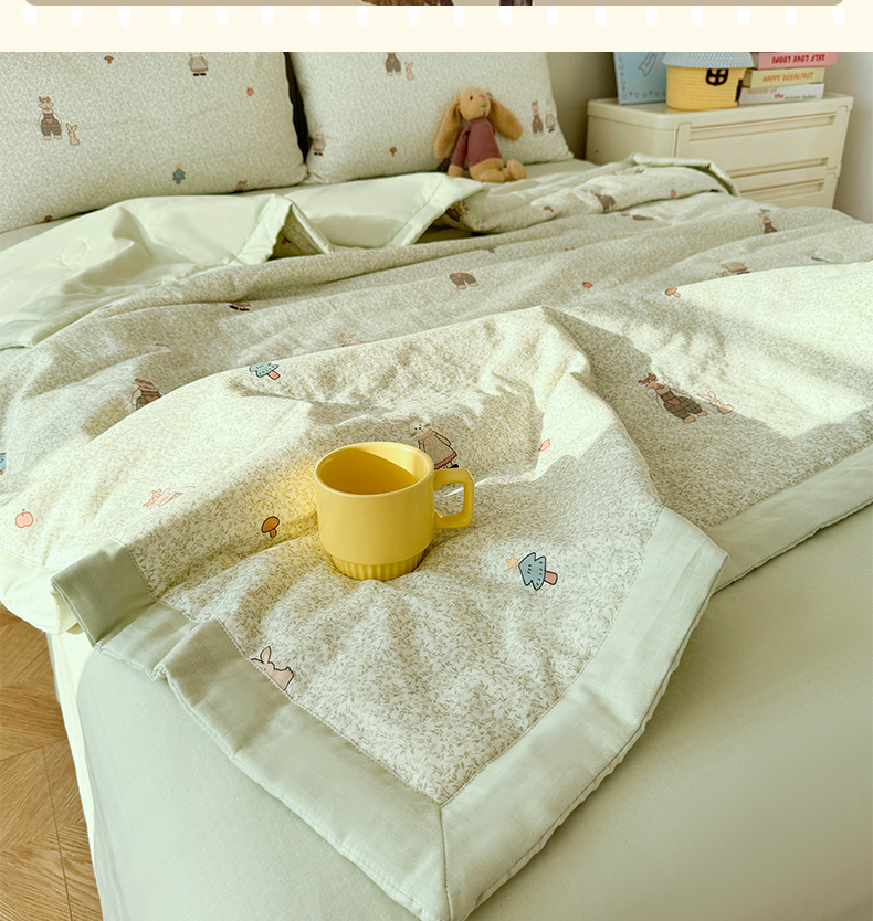 当前位置: 91家纺网 > 商品网购 > 床品套件 > 四件套 > 夏被四件套 > 佰亿莱 2025新款全棉双层纱大豆夏被四件套 亲密伙伴