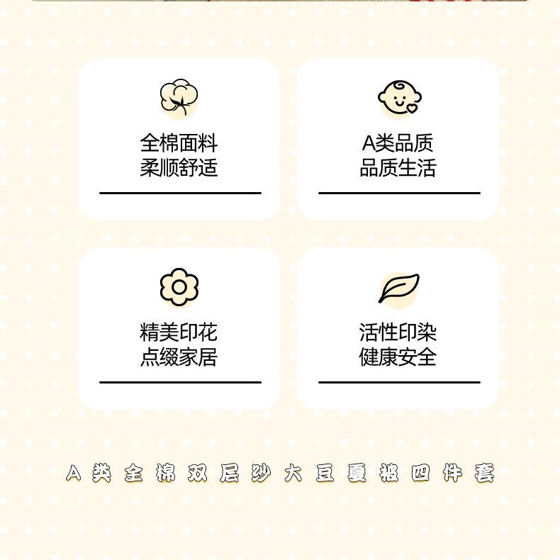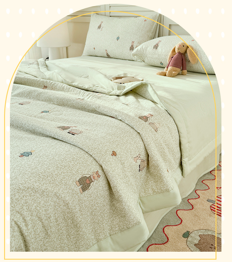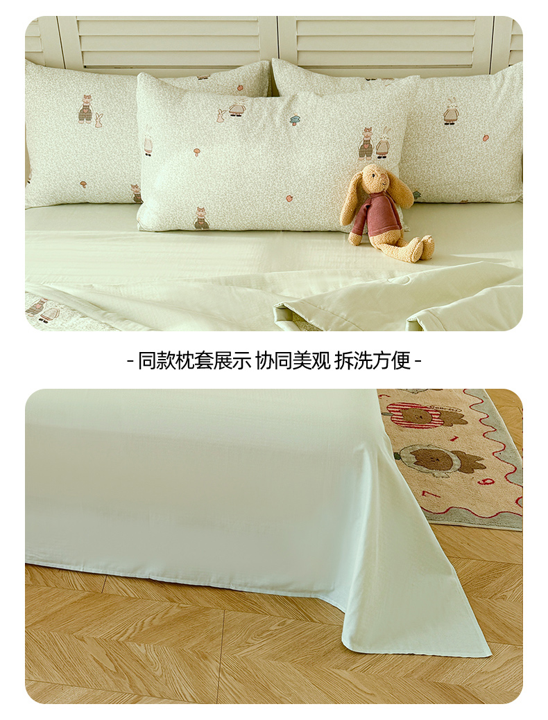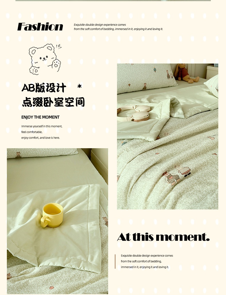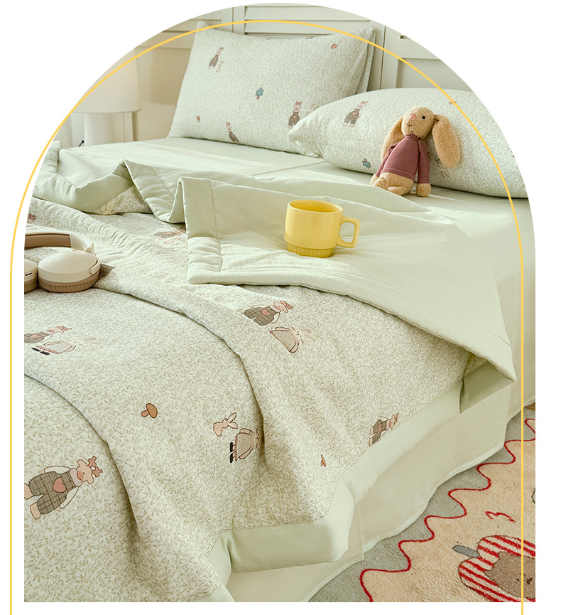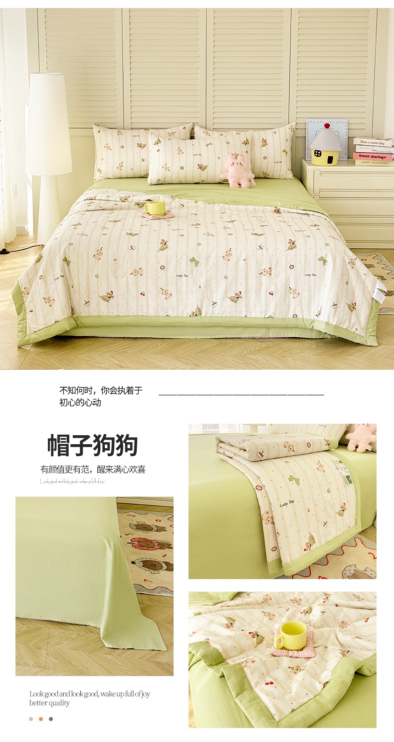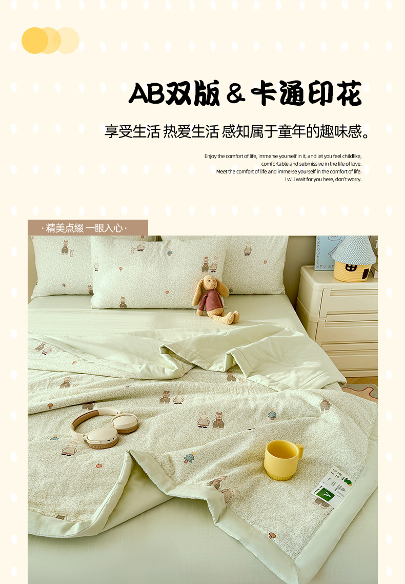 当前位置: 91家纺网 > 商品网购 > 床品套件 > 四件套 > 夏被四件套 > 佰亿莱 2025新款全棉双层纱大豆夏被四件套 亲密伙伴