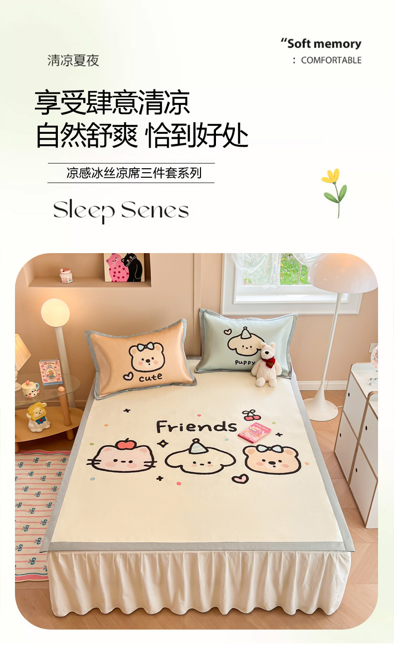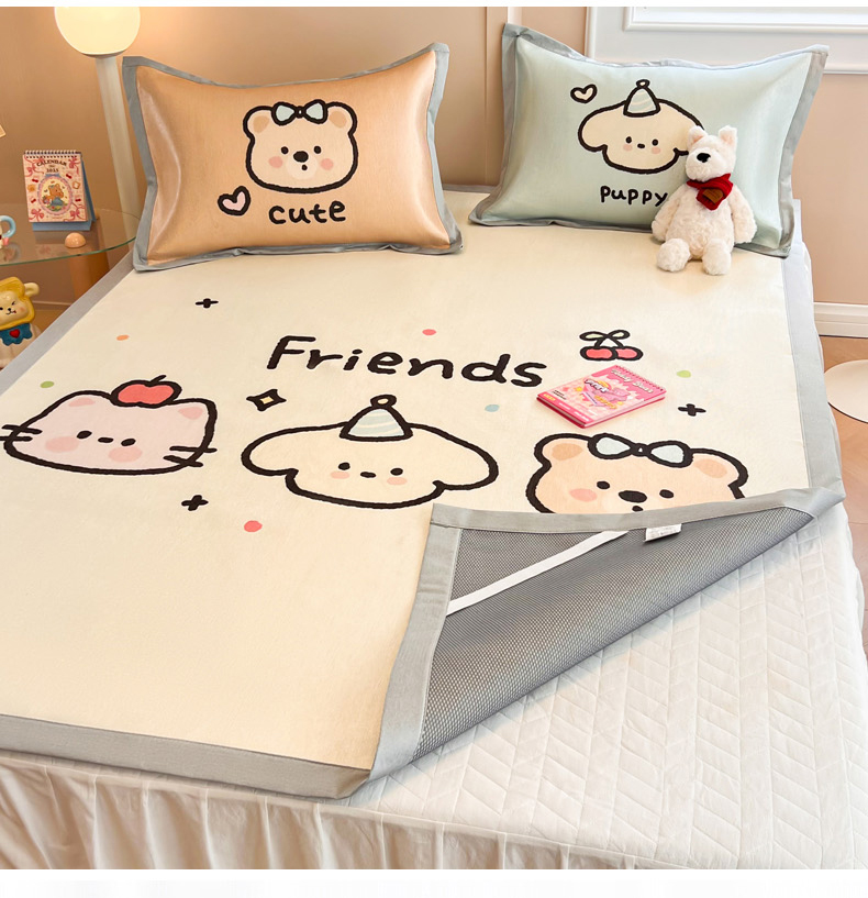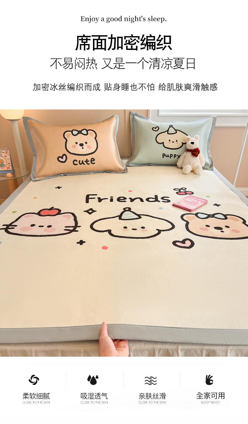 慕尚家纺 2025新款凉感大版冰丝席学生季款三件套 3个好朋友