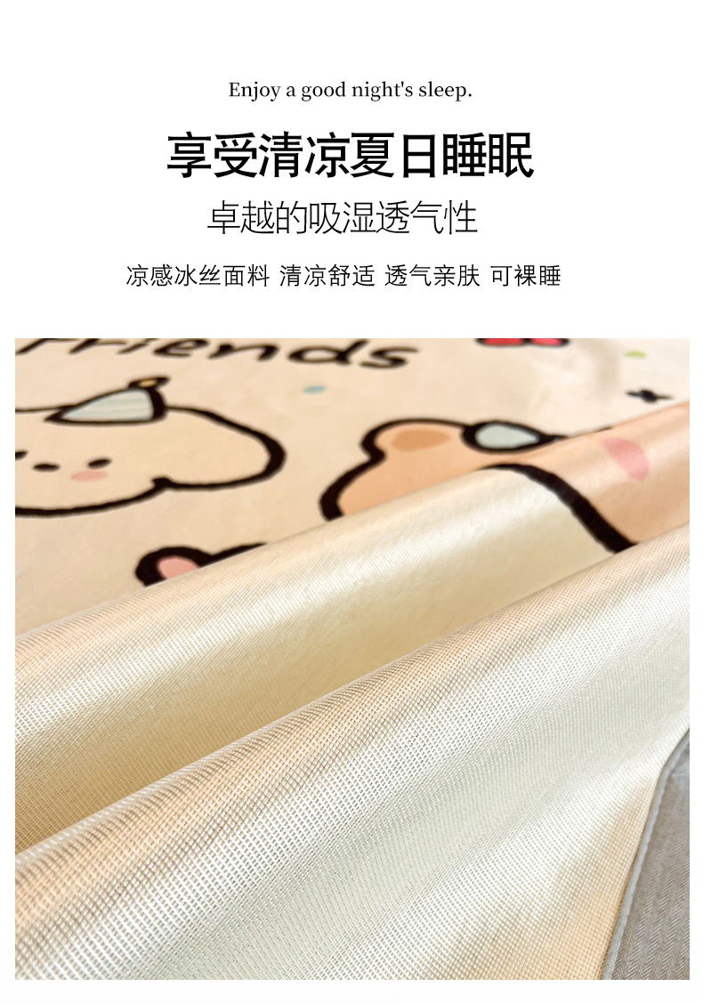 商品名称:慕尚家纺 2025新款凉感大版冰丝席学生季款三件套 3个好朋友