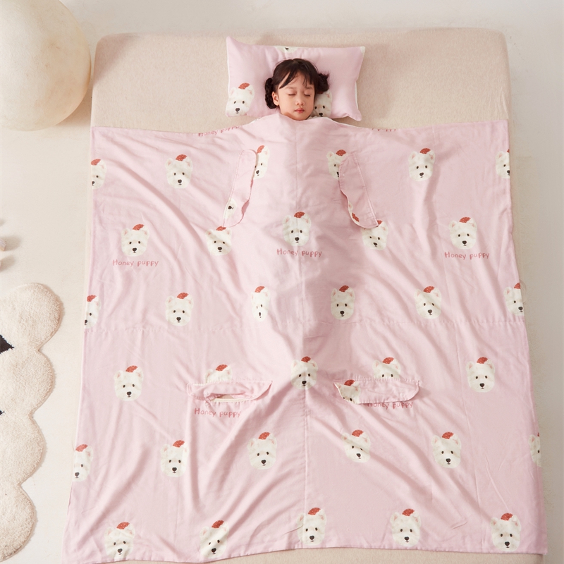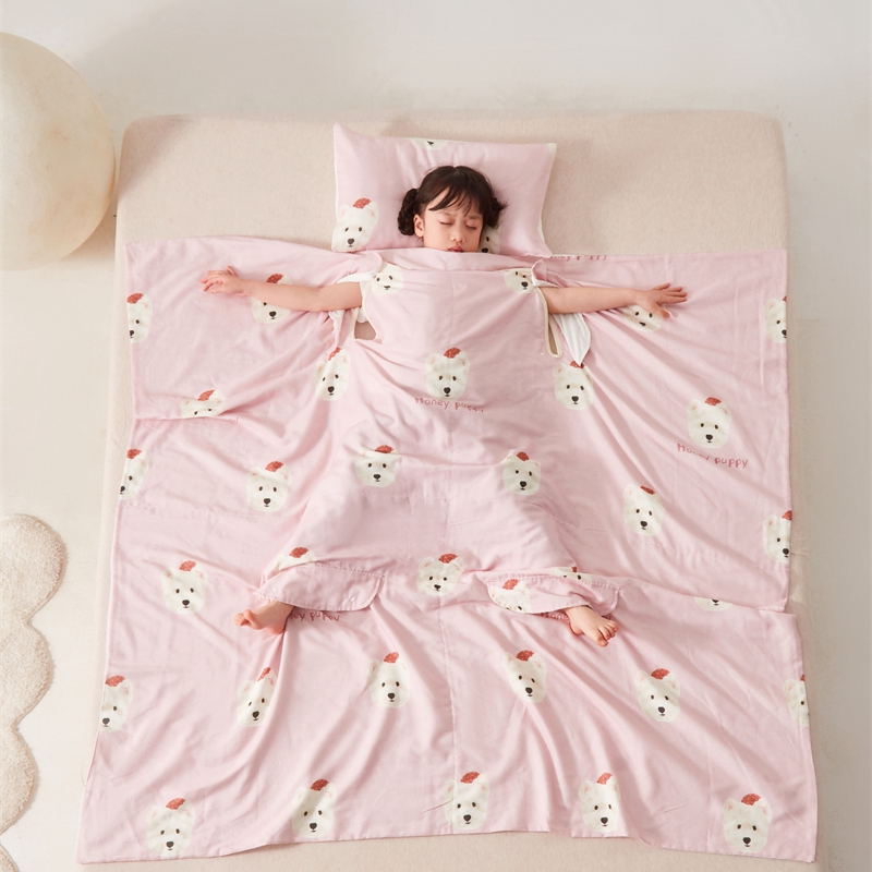 商品名称:艾佳宝贝 2025A类全棉纱布护肚防踢睡袋多功能盖毯宝宝夏被 乖萌小狗