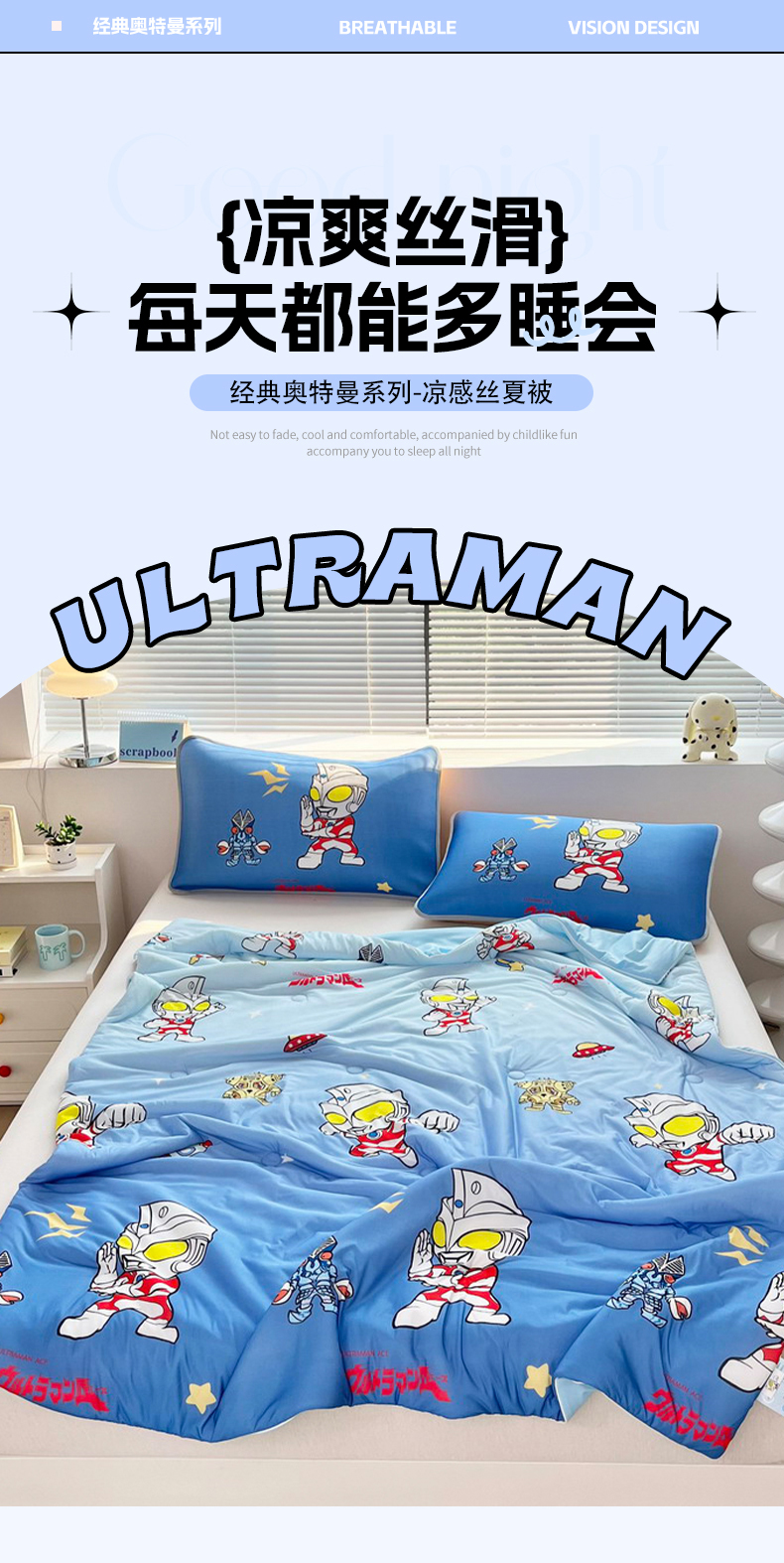 (总)蘭菲家纺 2025新款凉感丝奥特曼印花夏被,棒球队,抱团,超人兄弟,成功,出击,独行者,飞天,冠军,归来,科学家,闪电,上学,随影,太空游,王者,无敌,小虎队,勇士,宇宙飞人,运动员,正义之侠,追风