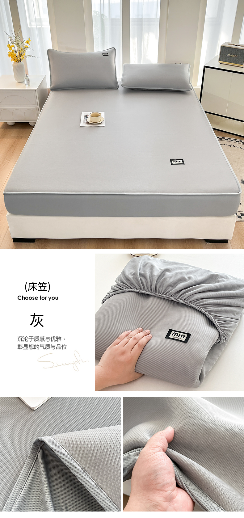 商品名称:子曰 2025新款A类高分子PE小清新凉感席系列-床笠款 小清新-灰