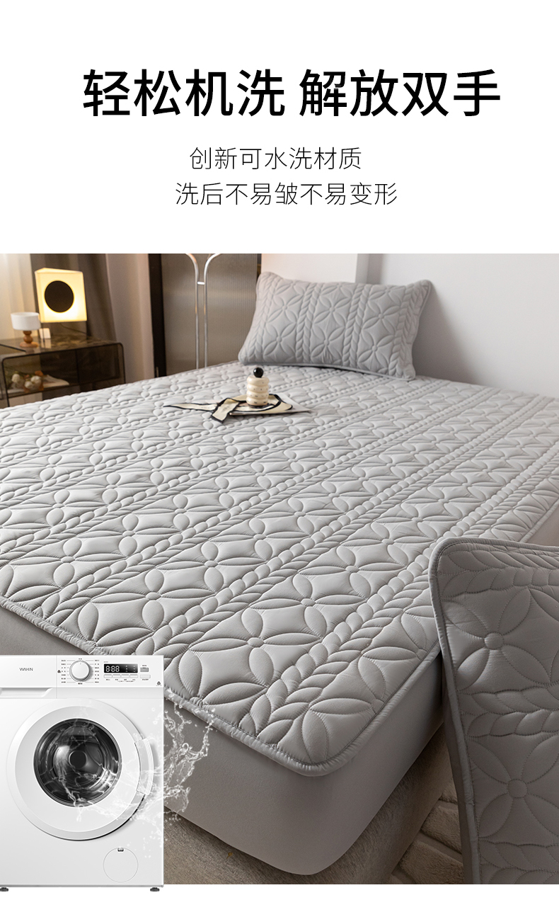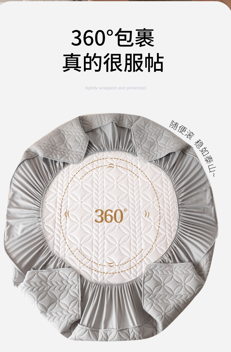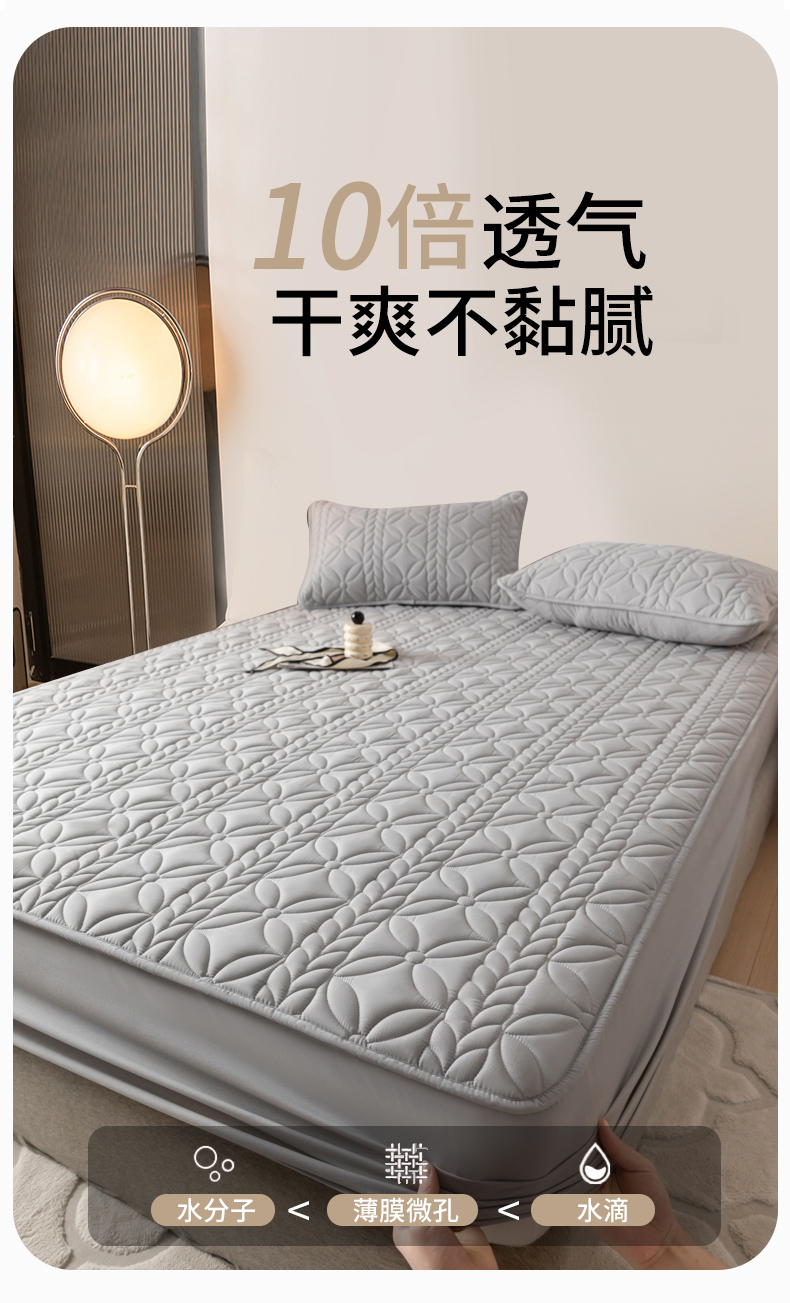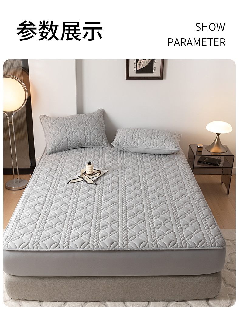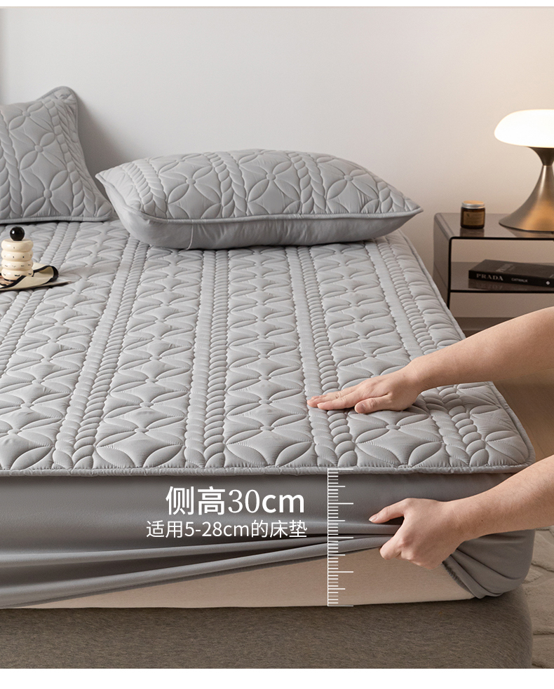 鑫钰 2025新款防水夹棉防水床笠-花穗 花穗-低调灰