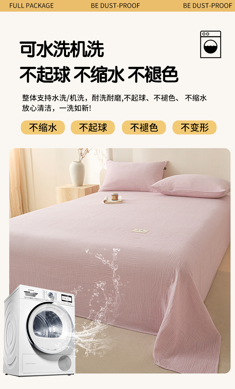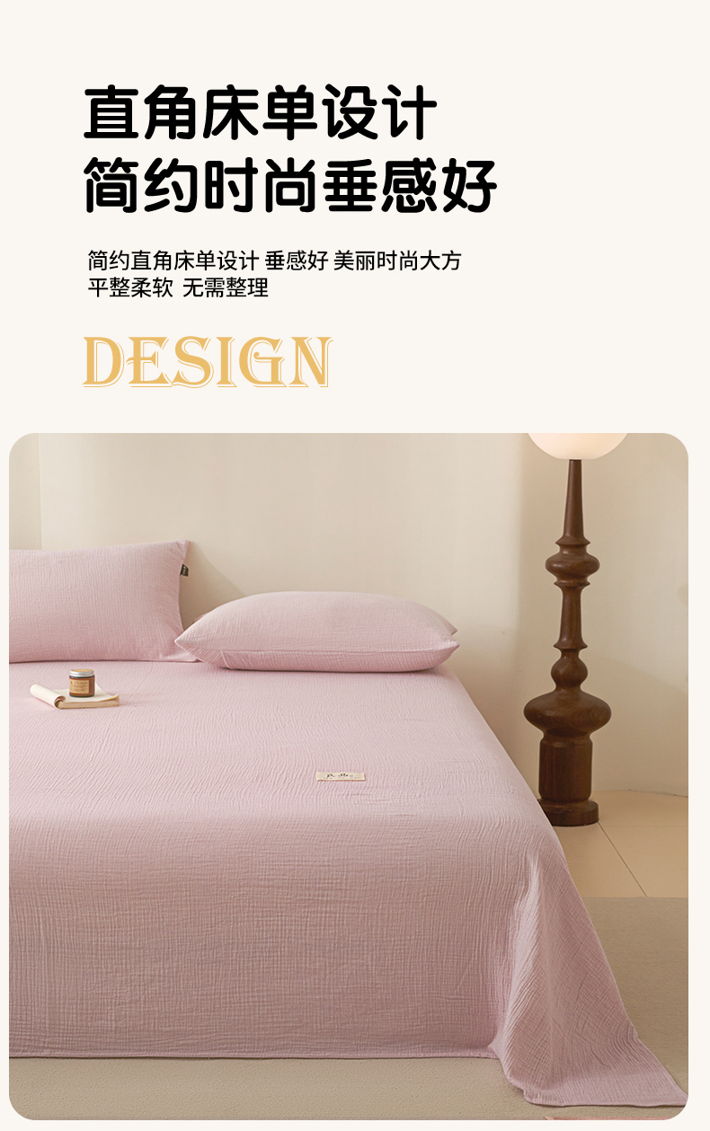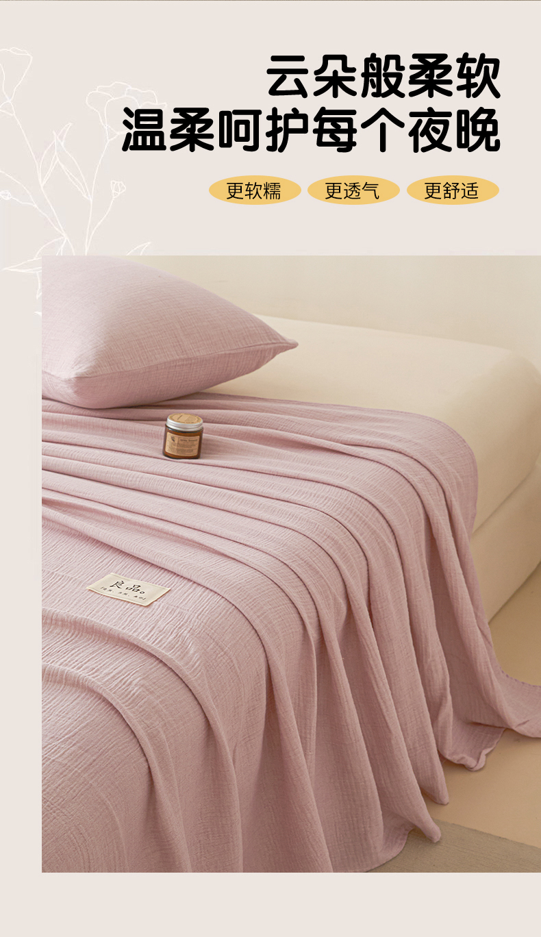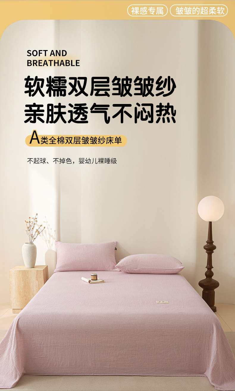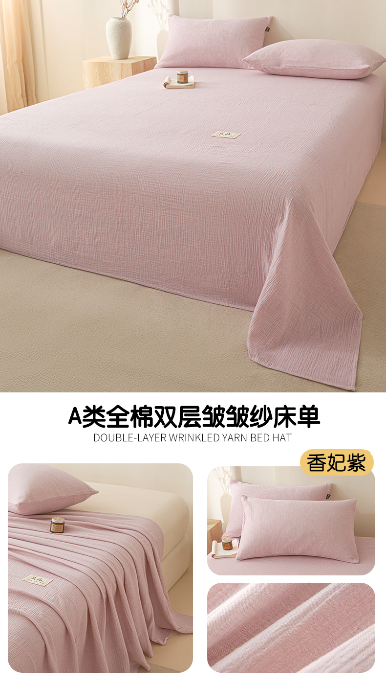 • 91家纺网 家纺一手货源 找家纺 鑫钰 2025新款纯色系列全棉双层皱皱纱床单-床笠 香妃紫-床单