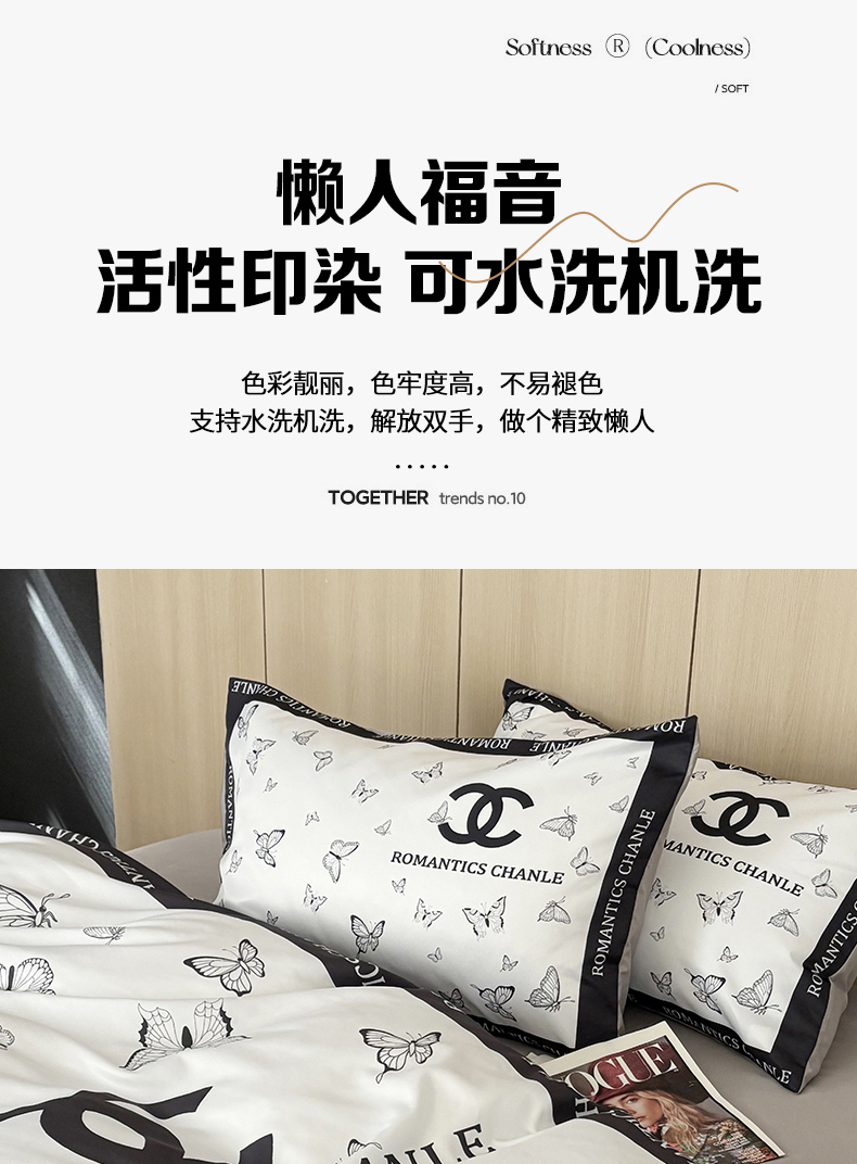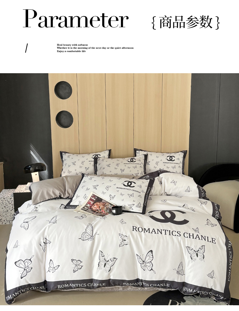 (总)色鬼布艺高端家居主号 2025新款轻奢亲肤纯棉数码印花网红热款四件套,豹纹香,白金V,白香花,大H,黑白迪,黑白V,灰迪,咖古,克莱因,慕斯小姐,山茶花,星空